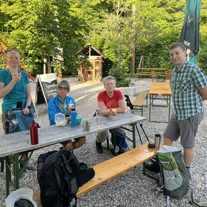 Fünf PilgerInnen und 14 RadfahrerInnen machten sich am 19.6.22 auf den Weg Richtung Lambach. Die ersten Fußgener brachen bereits um 4.30 Uhr bei der Pfarre auf, die anderen stießen um 6.30 Uhr beim Welldorado dazu.