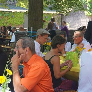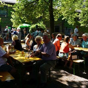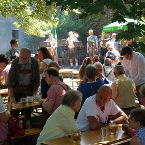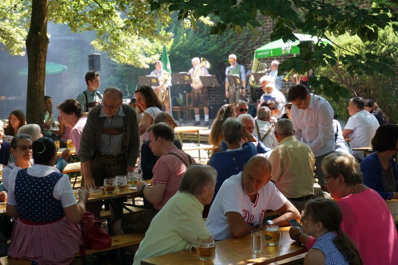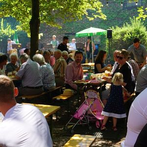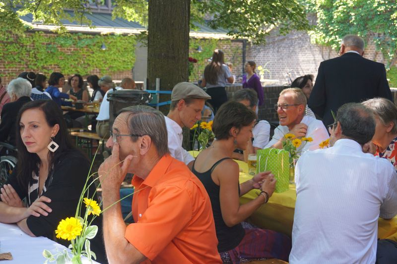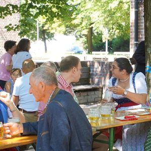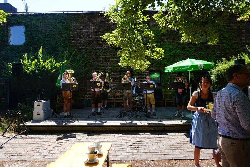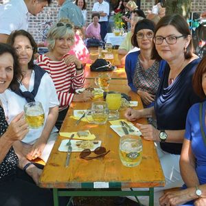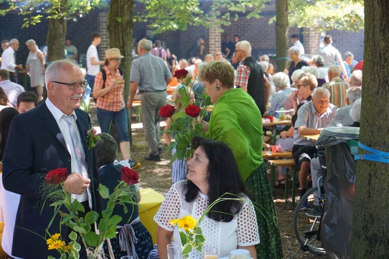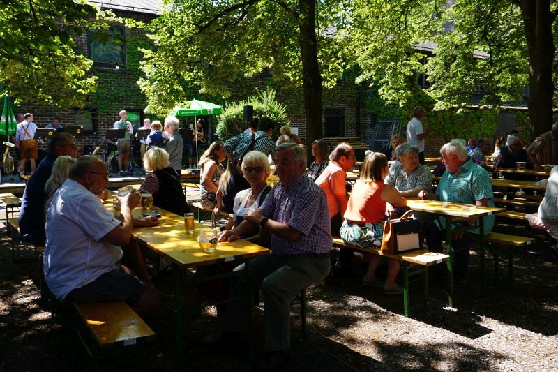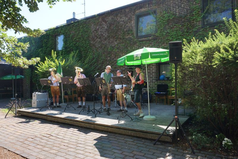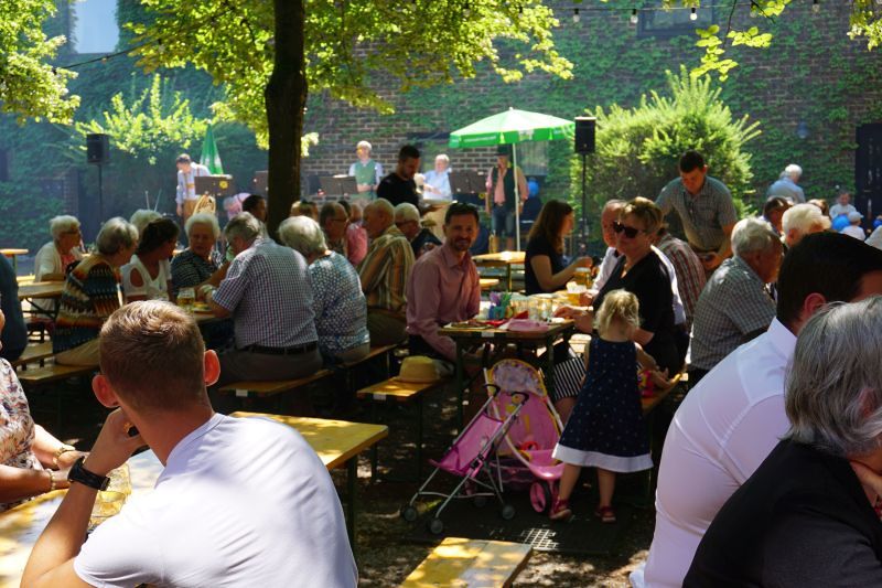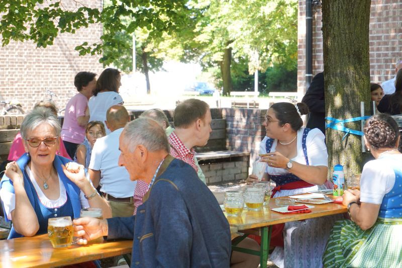 Bei Kaiserwetter organisierte der Fachausschuss für Feste und Feiern nach 2-jähriger Pause wieder den traditionellen Frühschoppen im Pfarrgarten.