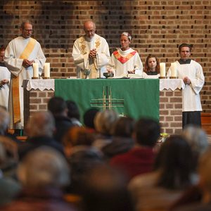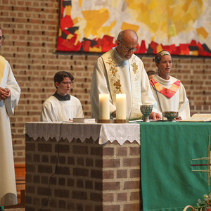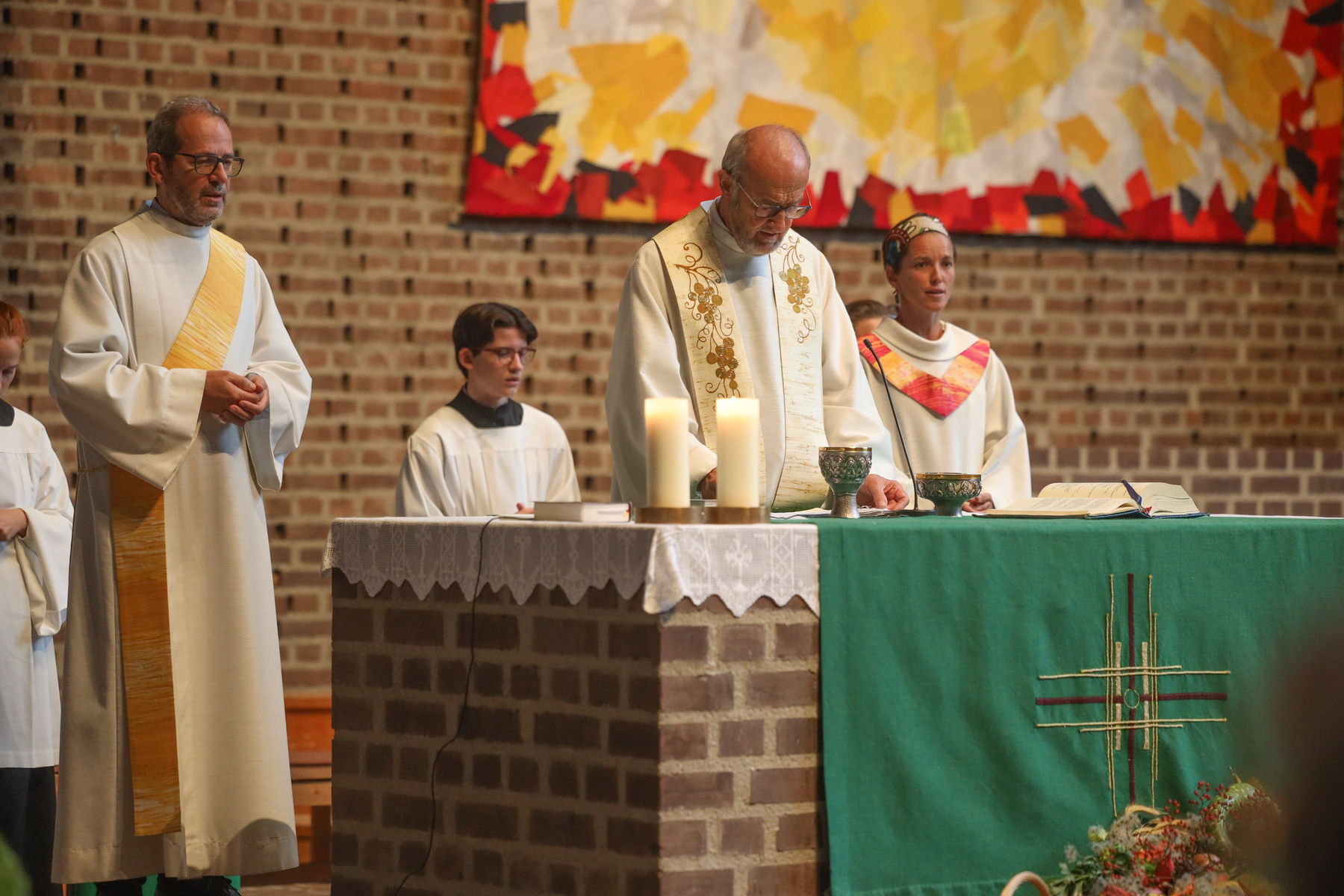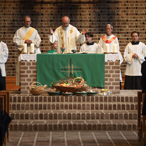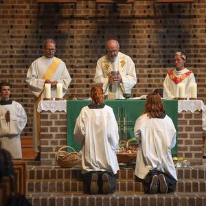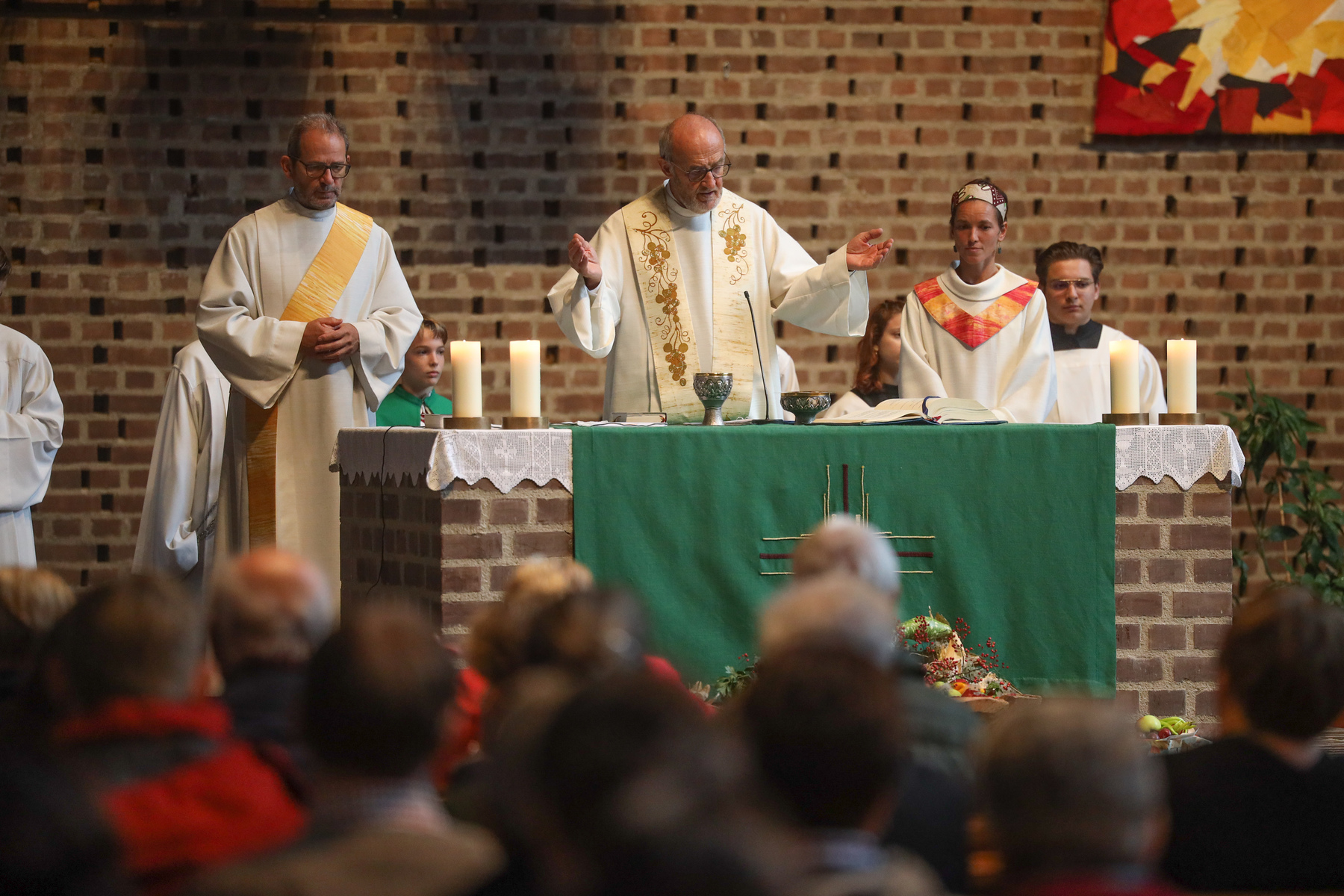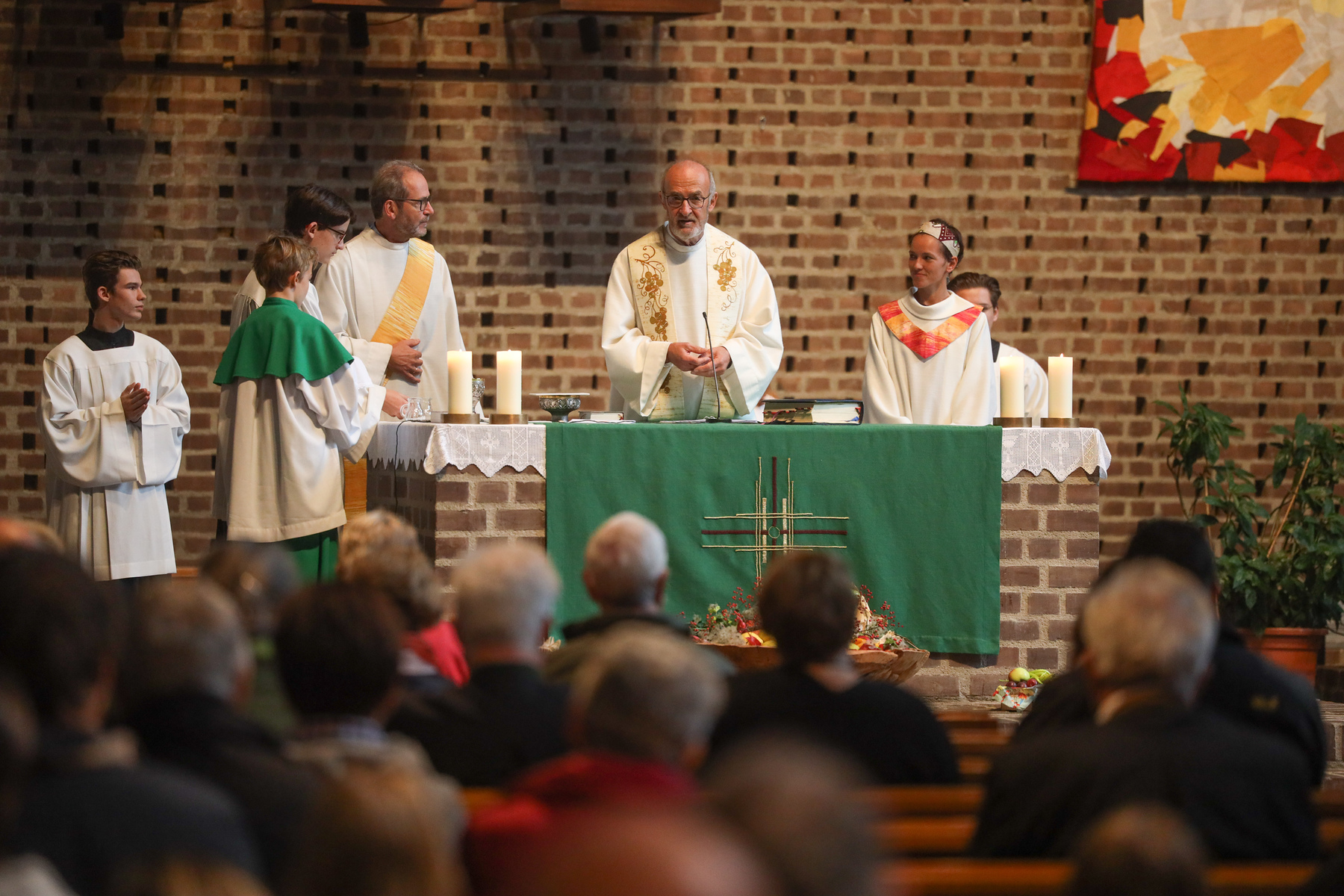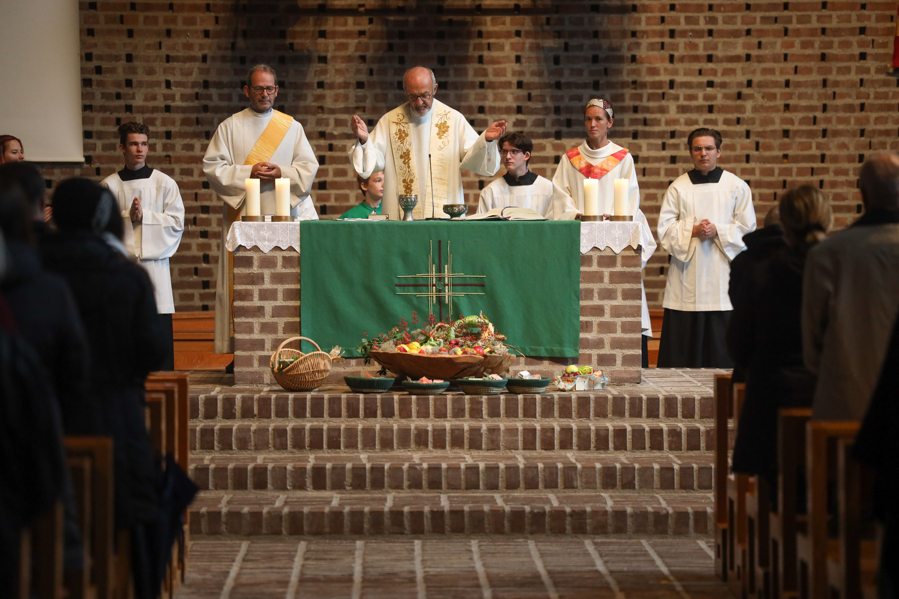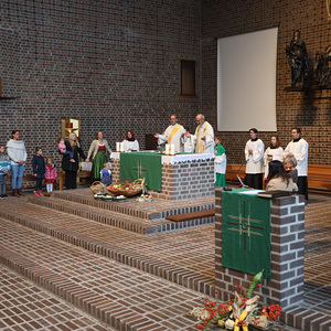 Am Beginn des Gottesdienstes stand der Dank für die Ernte im Mittelpunkt. Der festliche Gottesdienst wurde von Orgel und einem Bläserquartett begleitet. Gegen Ende des Erntedankgottesdienstes rückte dann ein besonderes Dankfest in den Mittelpunkt: "Am 01. September 1982 begann der damals 34-jährige Johann Bräuer seinen Dienst in der Pfarre Wels-St. Josef als Pfarrer.