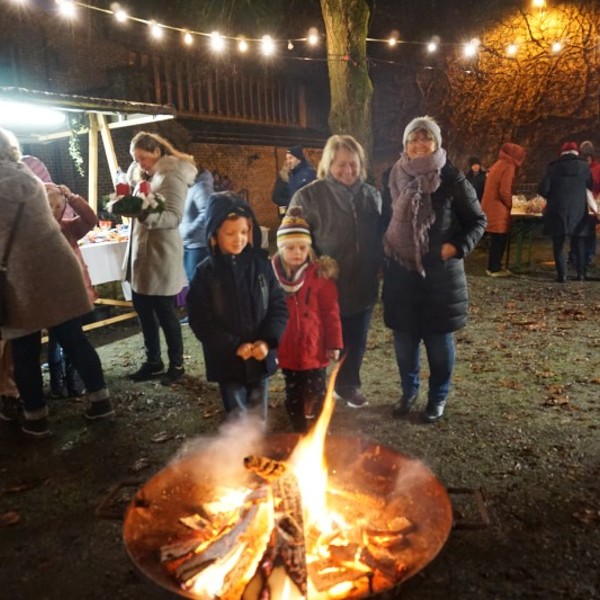 Für die zahlreichen Kinder waren die zwei Feuerschalen in der Mitte des Hofes besonders interessant.
