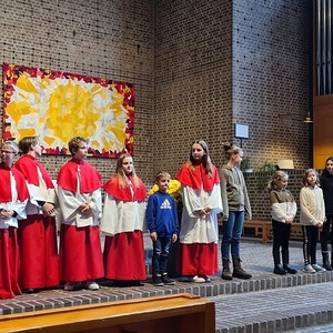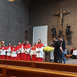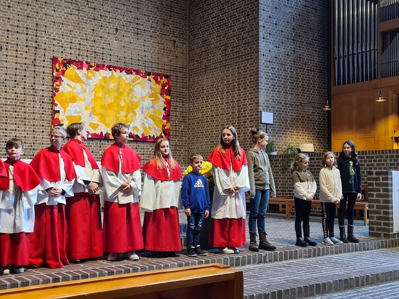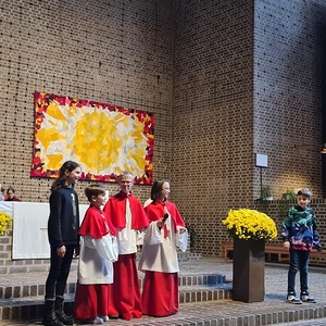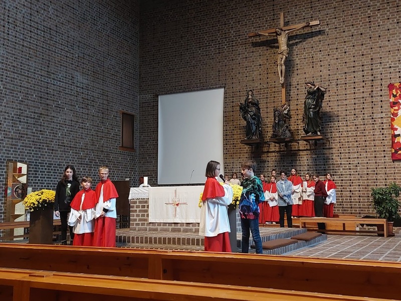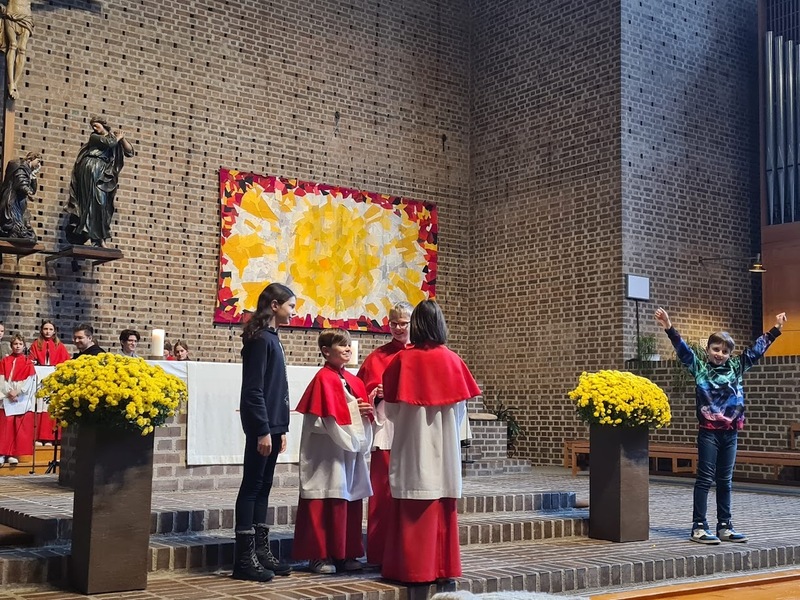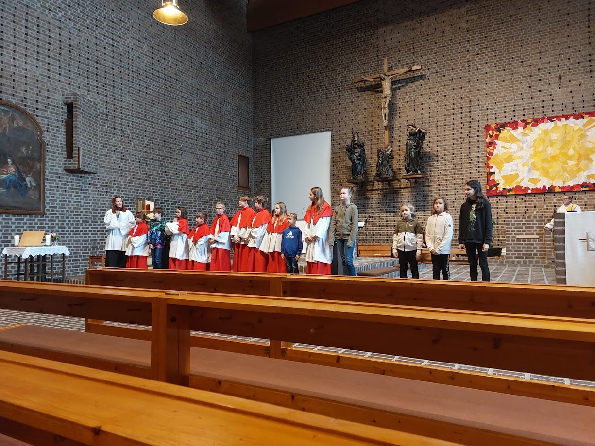 Die Jungschar und die Ministranten haben den Gottesdienst zu Christkönig wieder gestaltet. Sie haben sich Gedanken zur Geschichte vom „Regenbogenfisch“ gemacht, wo es um Akzeptanz, Großzügigkeit, Teilen und Empathie geht.