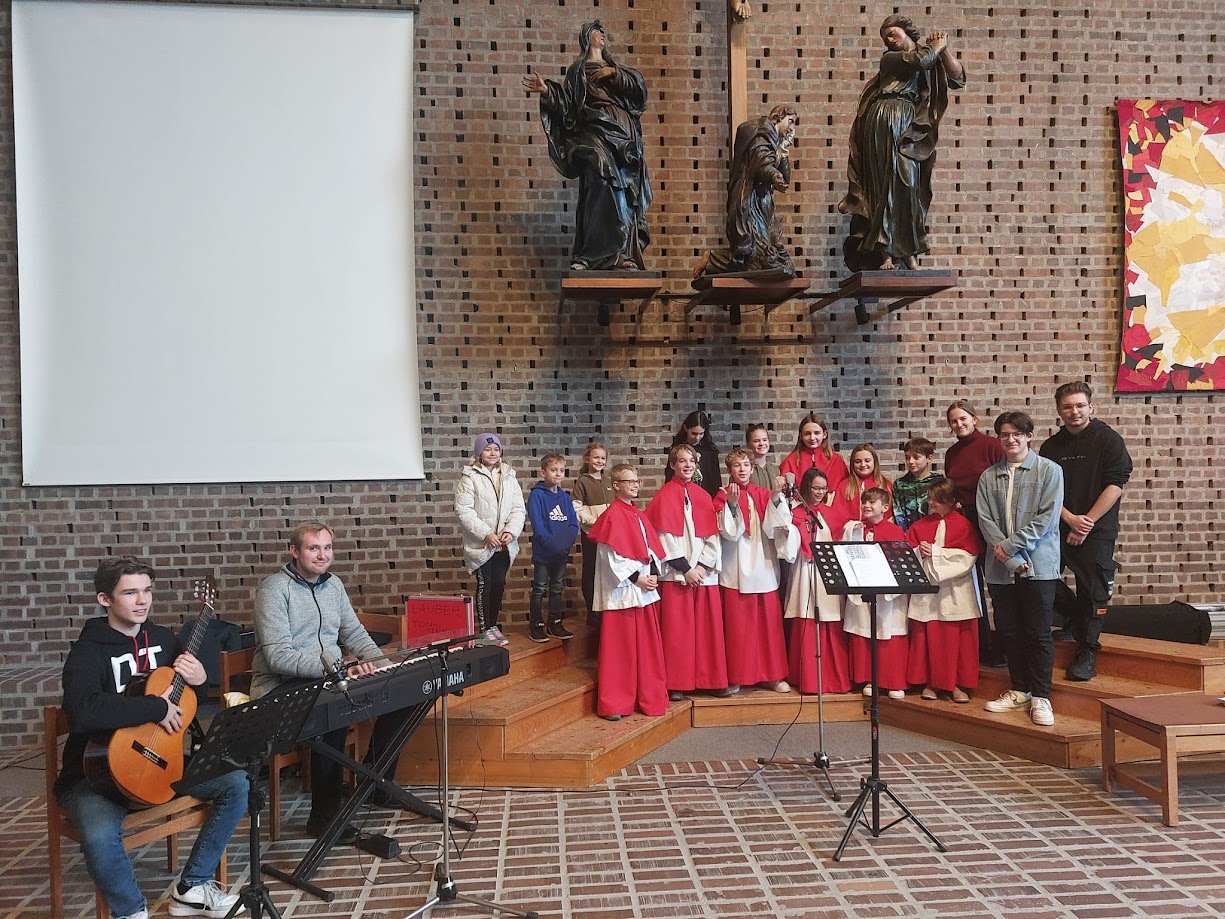 Es wurden schwungvolle Lieder gesungen, die auch per Piano und Gitarre von den Jugendlichen begleitet wurden. Zum Schluss wurde auch noch ein Tanz zum Regenbogenlied gezeigt.