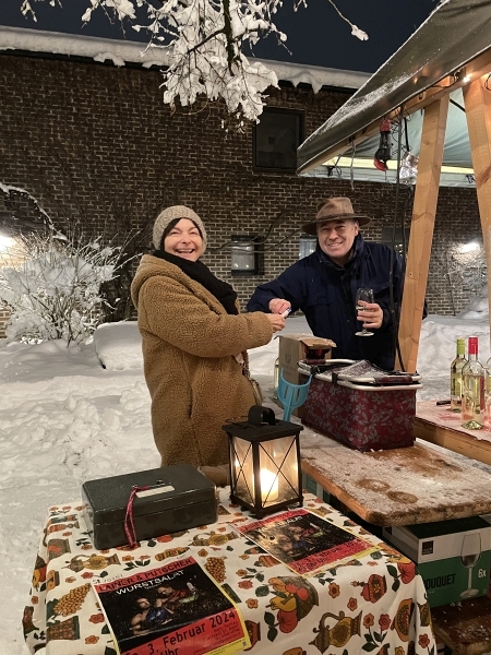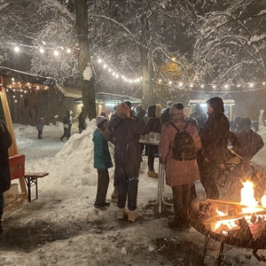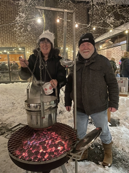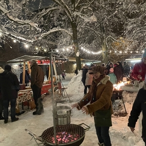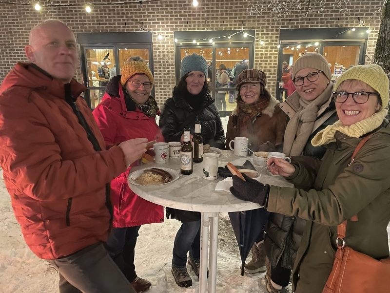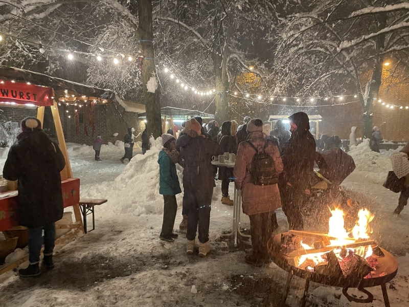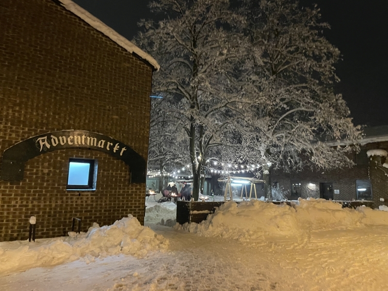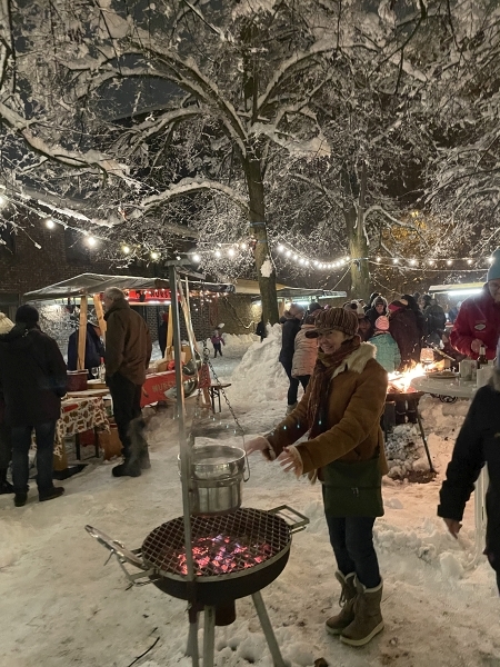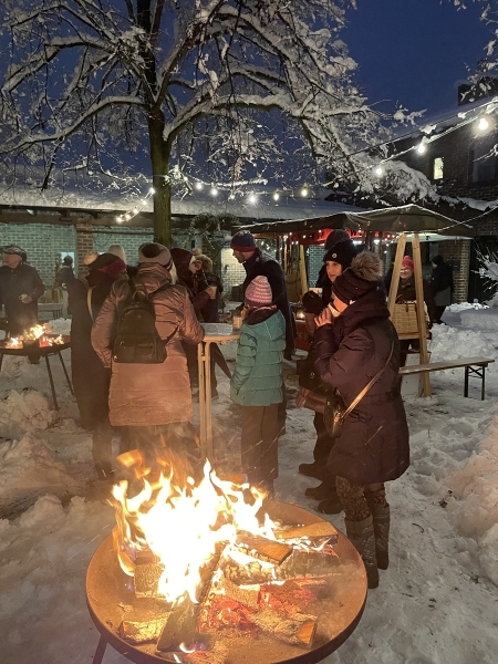 Die starken Schneefälle sorgten heuer für eine besonders idyllische Stimmung am Adventmarkt. Die Besucher gruppierten sich um die wärmenden Feuerschalen und genossen draußen heiße Getränke und Speisen während drinnen ein Kuchenbuffet zum Verweilen einlud.