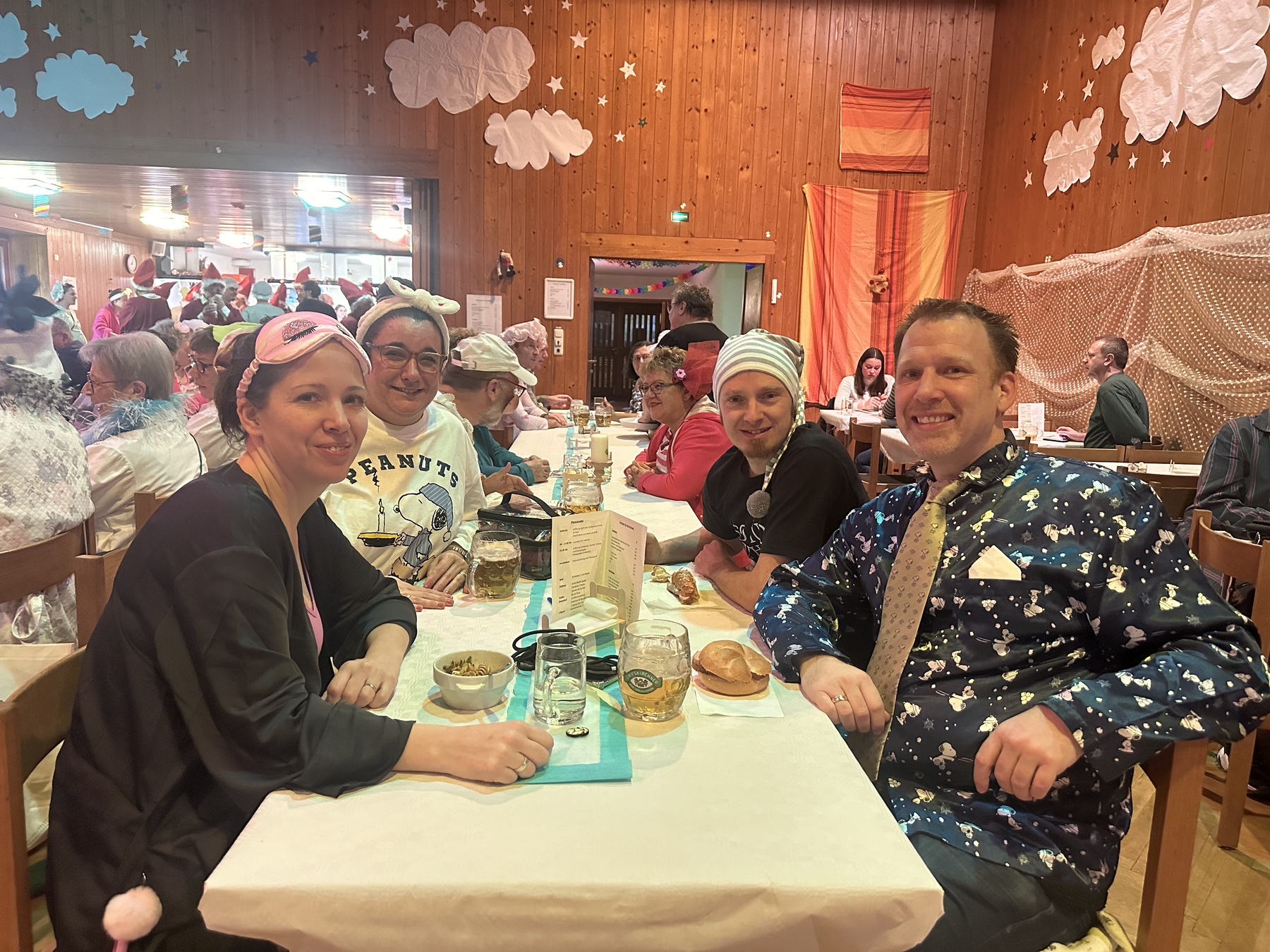 Am 20. Jänner fand der alljährliche Pfarrball unter dem Motto "Pernauer Federnball - ab zur Pyjamaparty" in den Räumlichkeiten unseres Pfarrheims statt. Nach der Eröffnung durch die Organisatoren - das Team des Fachausschusses für Feste & Feiern - wurde in bunten Federkostümen, Nachthemden und Kuscheloutfit gemeinsam mit dem Sandmännchen und der Zahnfee die Tanzfläche gerockt. Im gemütlichen Ambiente konnten sich die Gäste kulinarisch verwöhnen lassen, plaudern, tanzen und auch der eine oder andere Schlummertrunk wurde genossen. Nach der Ziehung der Tombolapreisgewinner flogen die Federn bei der unterhaltsamen Mitternachtseinlage unserer Pfarrjugend. Gefeiert wurde noch bis in die frühen Morgenstunden, bevor es dann wirklich ab ins Bett ging.