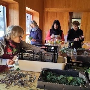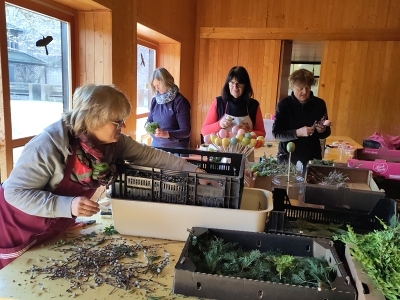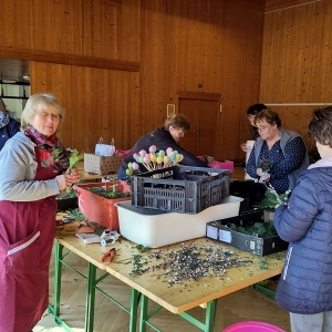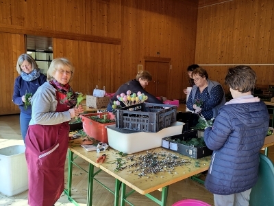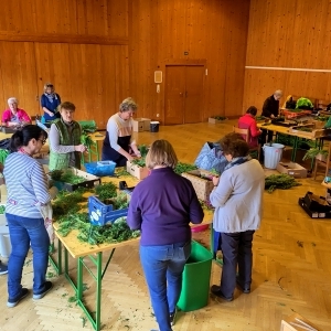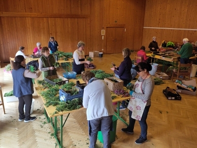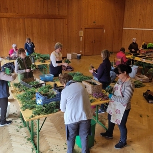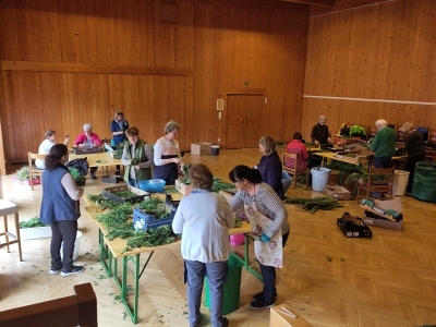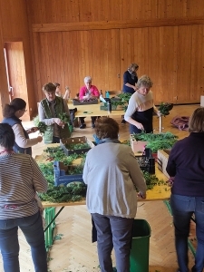 Viele fleißige Frauen sorgten auch heuer wieder unter der Leitung von Maria Kendel dafür, dass alle einen wundervollen Palmbuschen für ihre Wohnungen und Häueser bekamen.