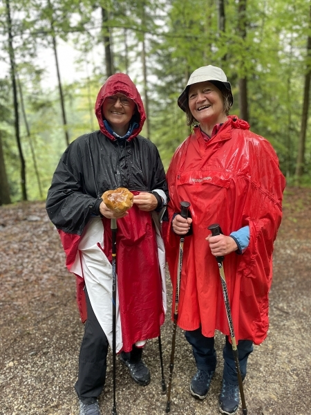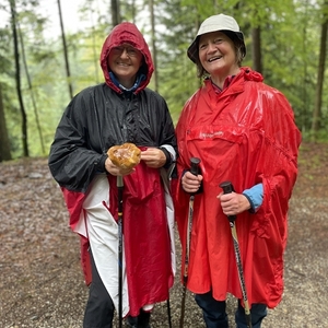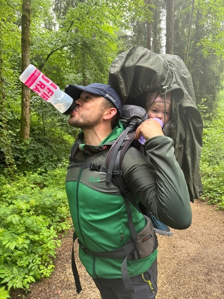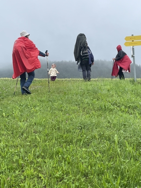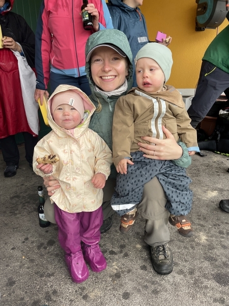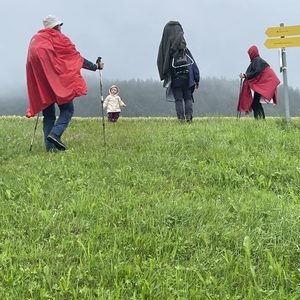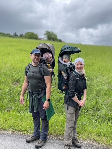Erstmalig mit zwei Kleinkindern von einem und zwei Jahren. Diese hatten es trotz des vielen Regens recht gemütlich in ihren "Buckelkraxen" und waren bis zum Schluss, dank der vielen Gesprächspartner:innen, gut gelaunt.
