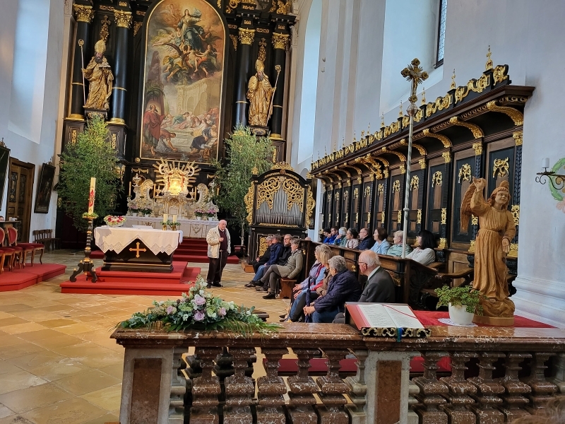 An die dreißig Wallfahrer:innen feierten am Sonntag mit Pfarrassistent Andreas Hasibeder einen würdigen Gottesdienst in der Stiftskirche.