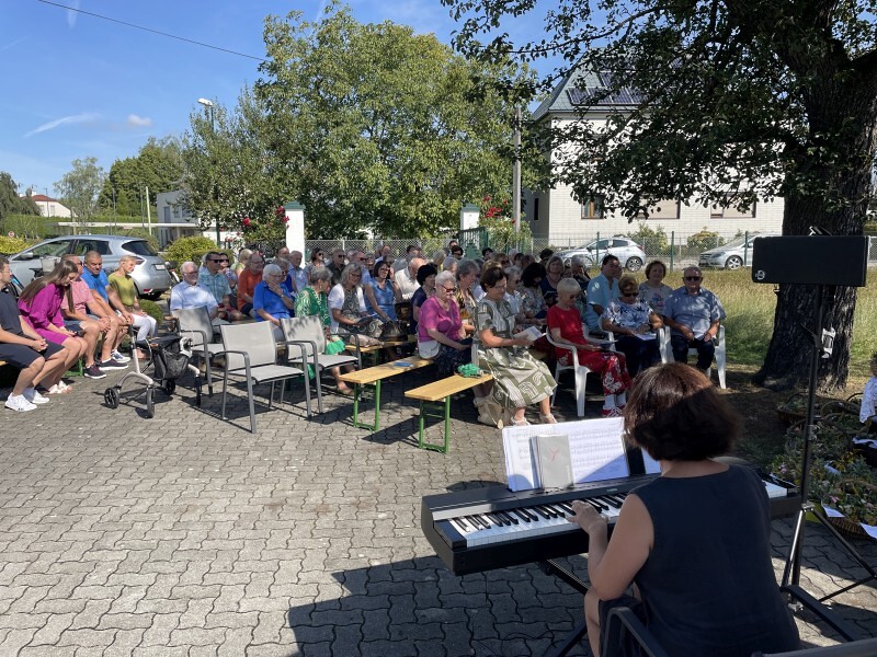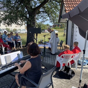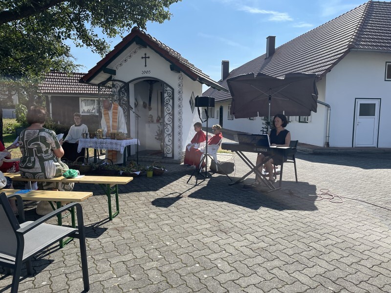 Bei strahlendem Wetter versammelten sich zahlreiche Gläubige zum traditionellen Gottesdienst bei der Stelzer Kapelle in der Schafwiesenstraße.