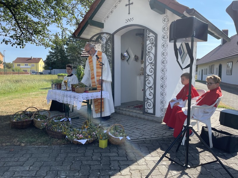 Pfarrmoderator Johann Bräuer erzählte unter anderem die Legende von Marias Tod und Grablegung in Jerusalem. Drei Tag nach ihrem Tod gingen die Apostel und Frauen zum Grab, um den Leichnam zu salben. Aber sie fanden nur eine ganz besondere Blumenpracht am Grab vor, Blumen, die nicht von dieser Welt sind und einen ganz besonderen Duft verbreiteten.