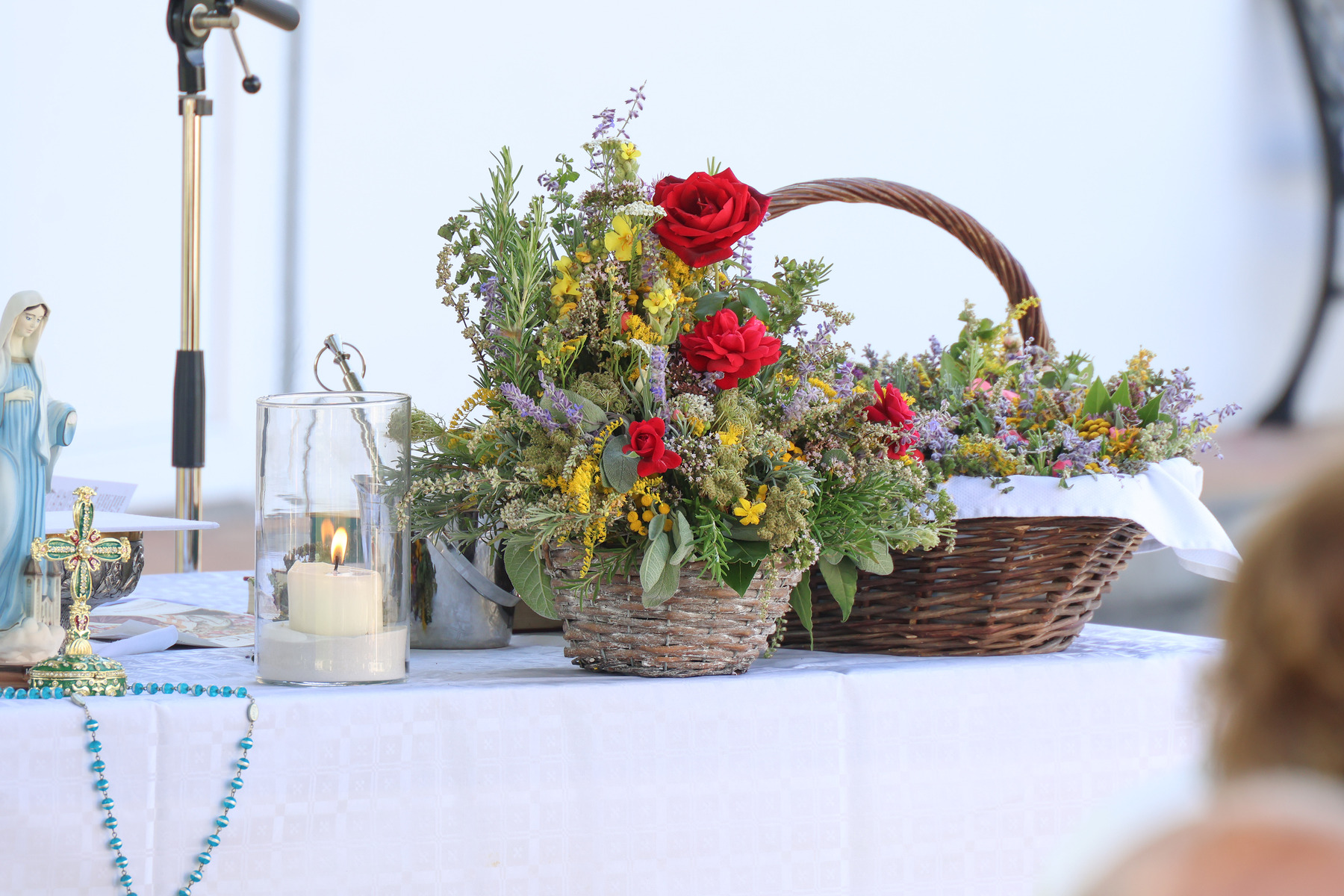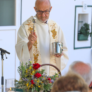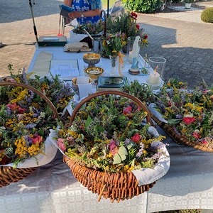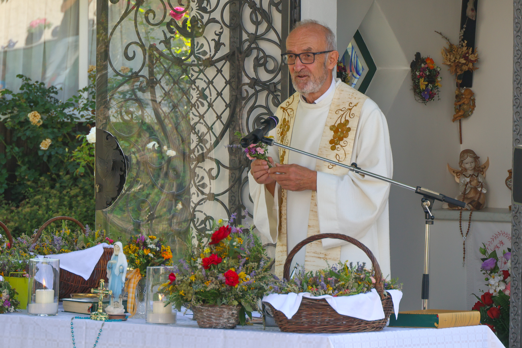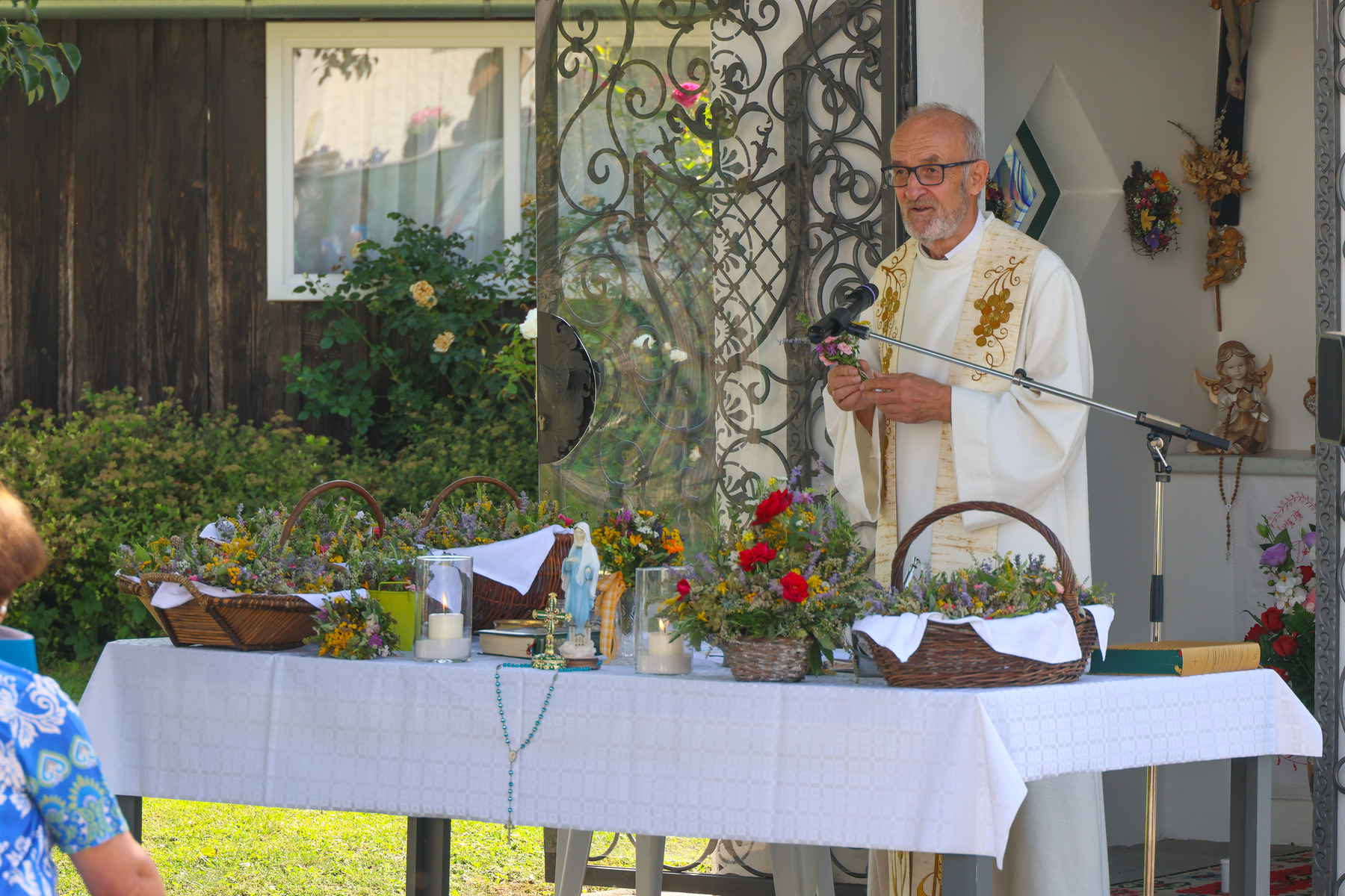 Am Ende des Gottesdienstes segnete Pfarrmoderator Johann Bräuer die vielen Kräuterbüscherl, die von fleißigen Frauen gebunden wurden und gegen eine Spende mit nach Hause genommen werden konnten.