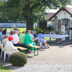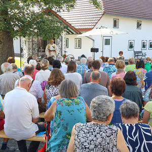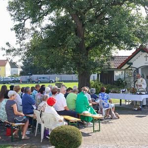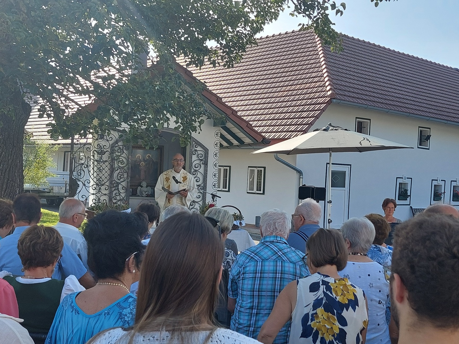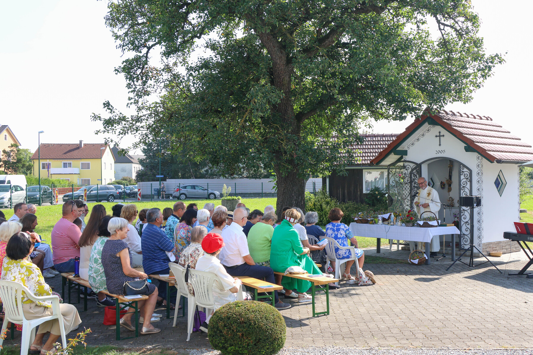 Bei herrlichem Sommerwetter traf sich die Pfarrgemeinde am 15. August 2025 bei der Stelzer-Kapelle. Eine ganz besondere Stimmung entsteht, wenn im Schatten des großen Birnbaumes unter freiem Himmel gemeinsam Eucharistie - Dankfeier - gefeiert wird.