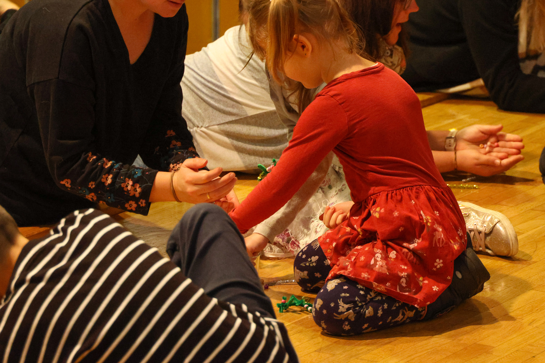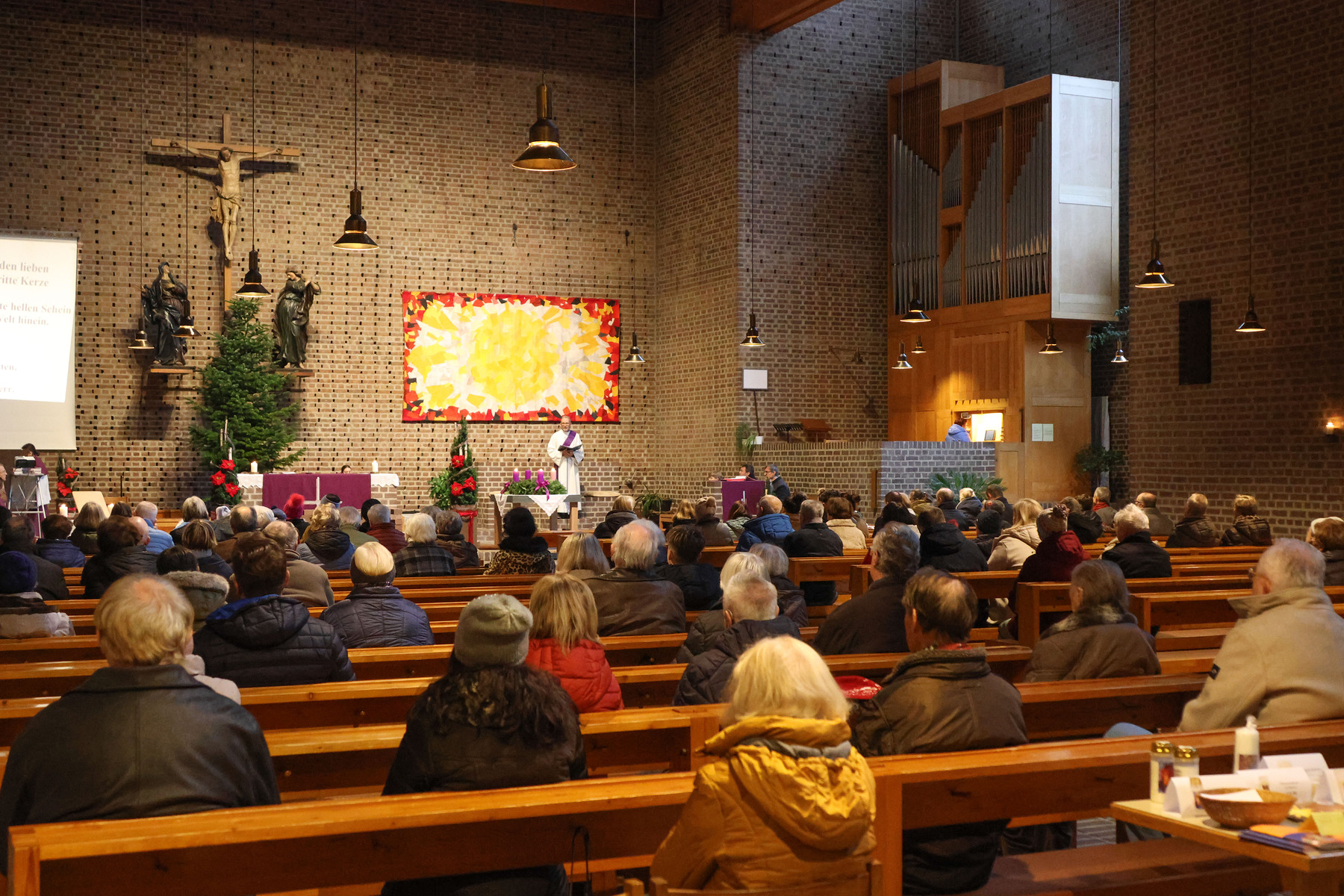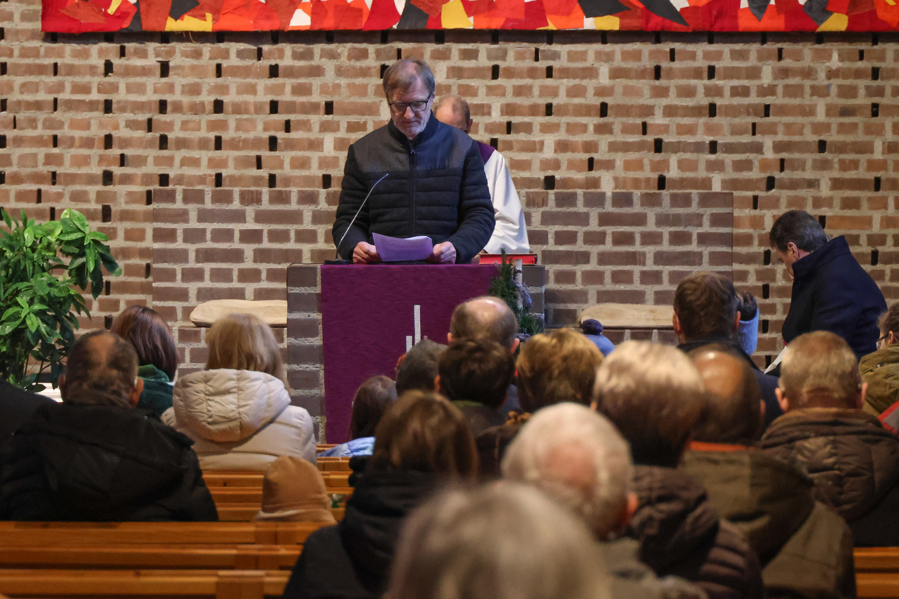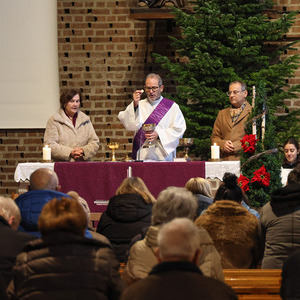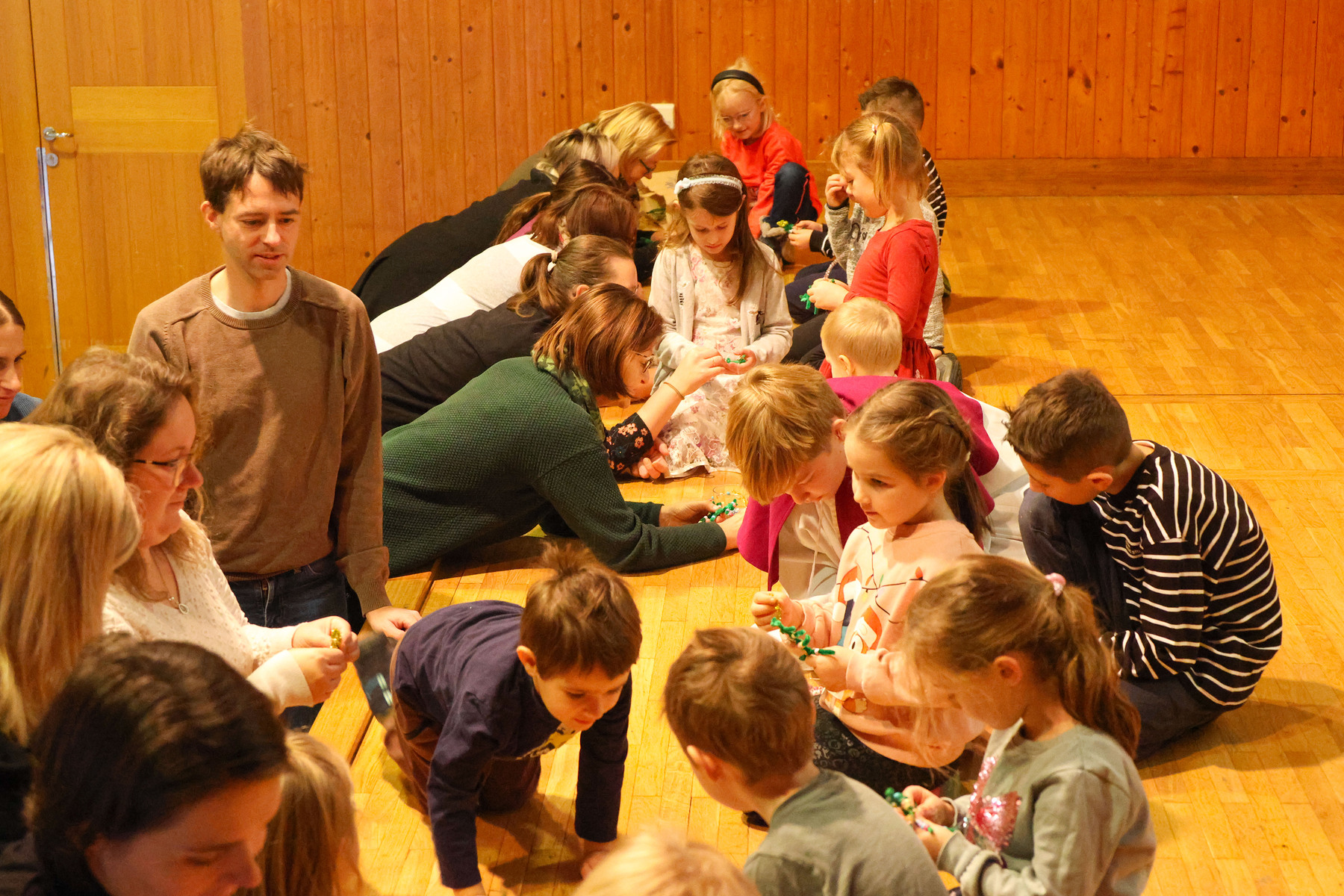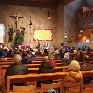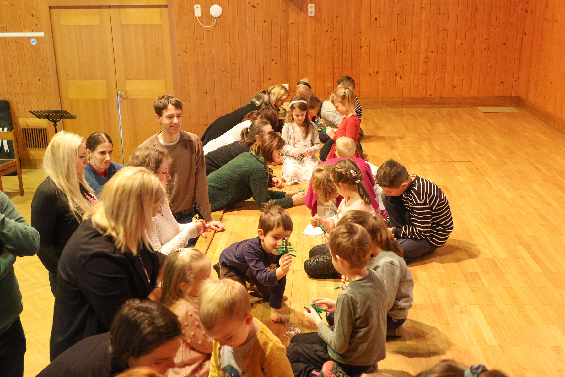 Die kleineren Gottesdienstbesucherinnen und Besucher begaben sich nach dem gemeinsamen Beginn in den Josefsaal und feierten dort die Kinderkirche. Dass auch kleine Dinge ganz wichtig sein können wurde anhand eines kleinen Tannenbaumes gezeigt. Die Kinder waren dann eingeladen einen eigenen kleinen Weihnachtsbaum mit Perlen und Girlanden im Miniaturformat zu schmücken. Danach ging es pünktlich zum gemeinsamen Vater unser-Gebet wieder in die Kirche.