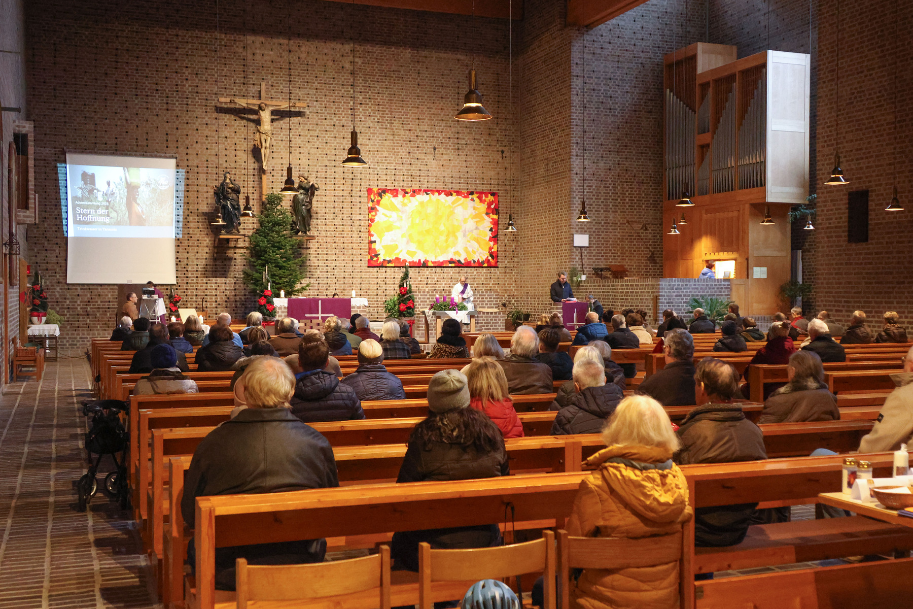 Die kmb präsentierte bei dem Sonntagsgottesdienst am 3. Adventsonntag die Aktion "sei so frei". Das Spendenprojekt "Trinkwasser for Tansania" - für das am Ende des Gottesdienstes gesammelt wurde - wurde anstelle der Predigt näher vorgestellt.