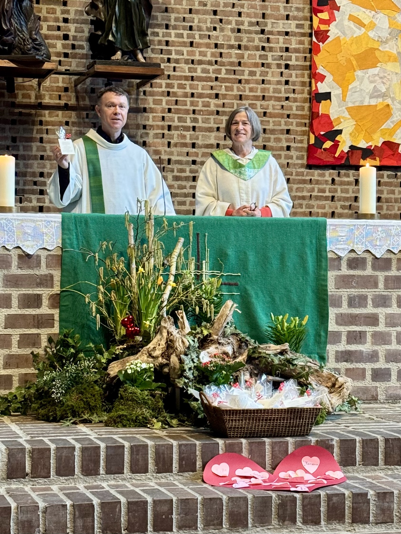 Die beiden Gottesdienstleiter Helga Wieser und René Prinz-Toifl wiesen in der Predigt anlässlich des Evangeliums „Ihr seid das Salz der Erde …“ auf die verschiedenen Wirkungen von Salz hin. Es würzt, reinigt, konserviert und taut auf.