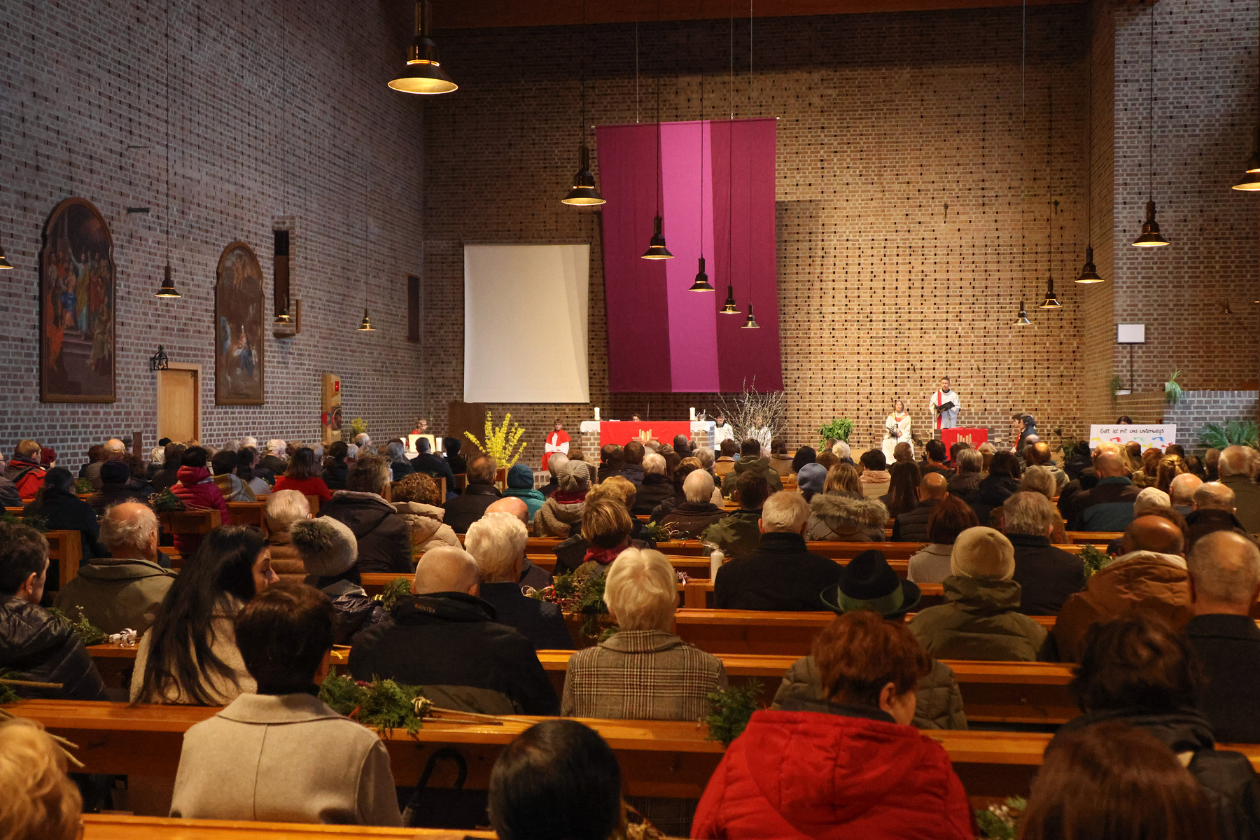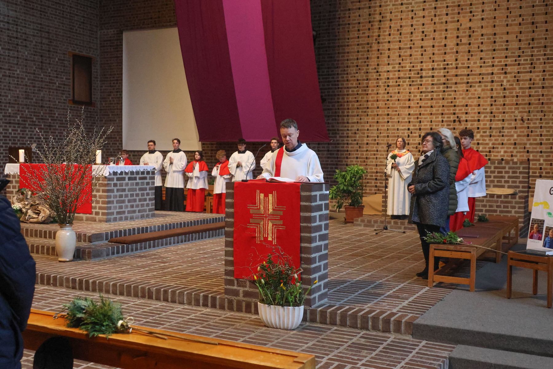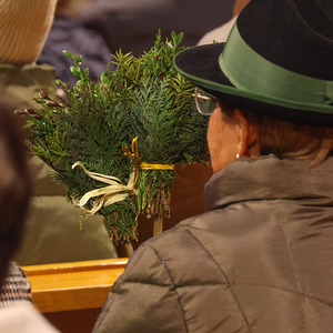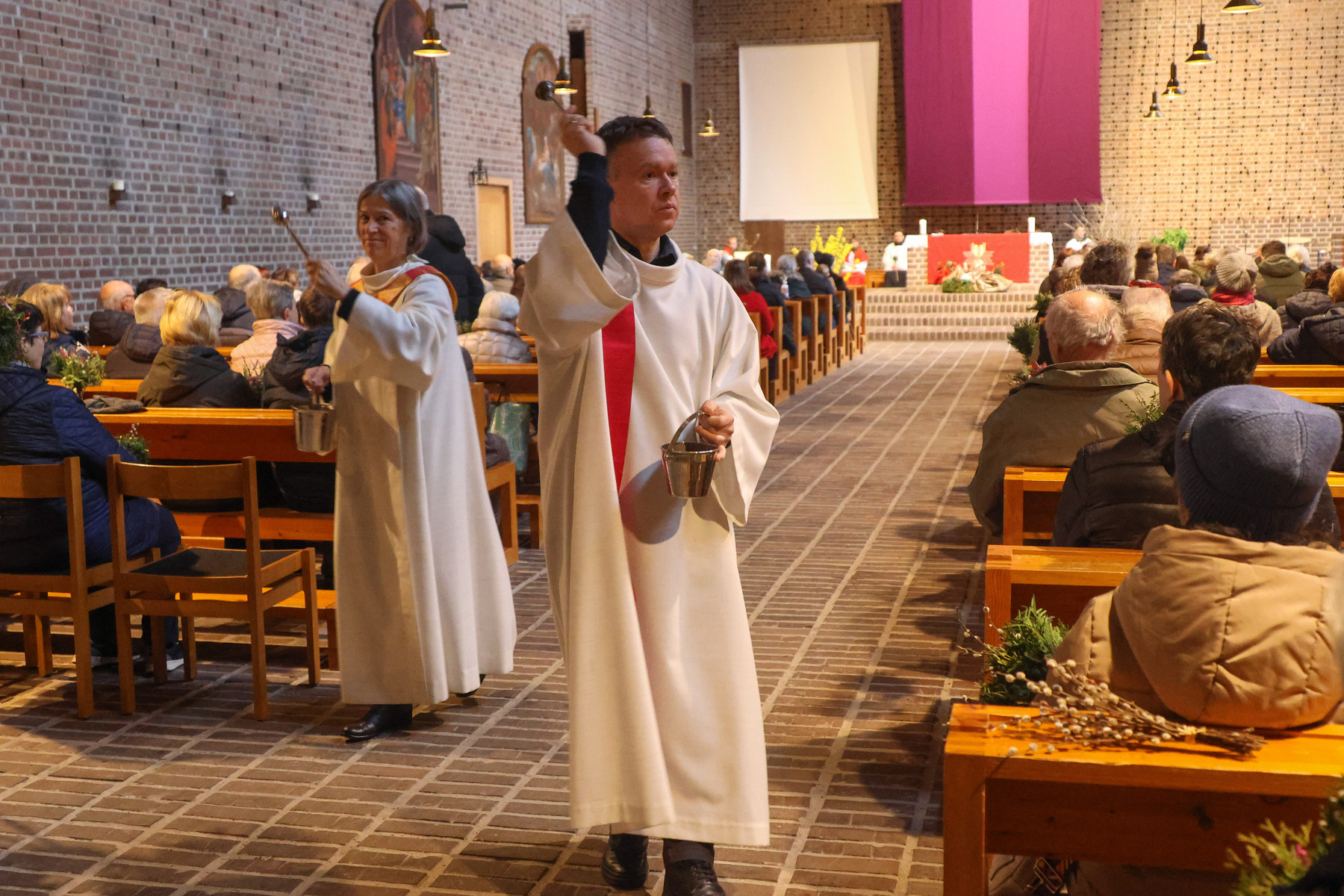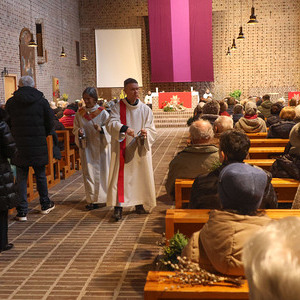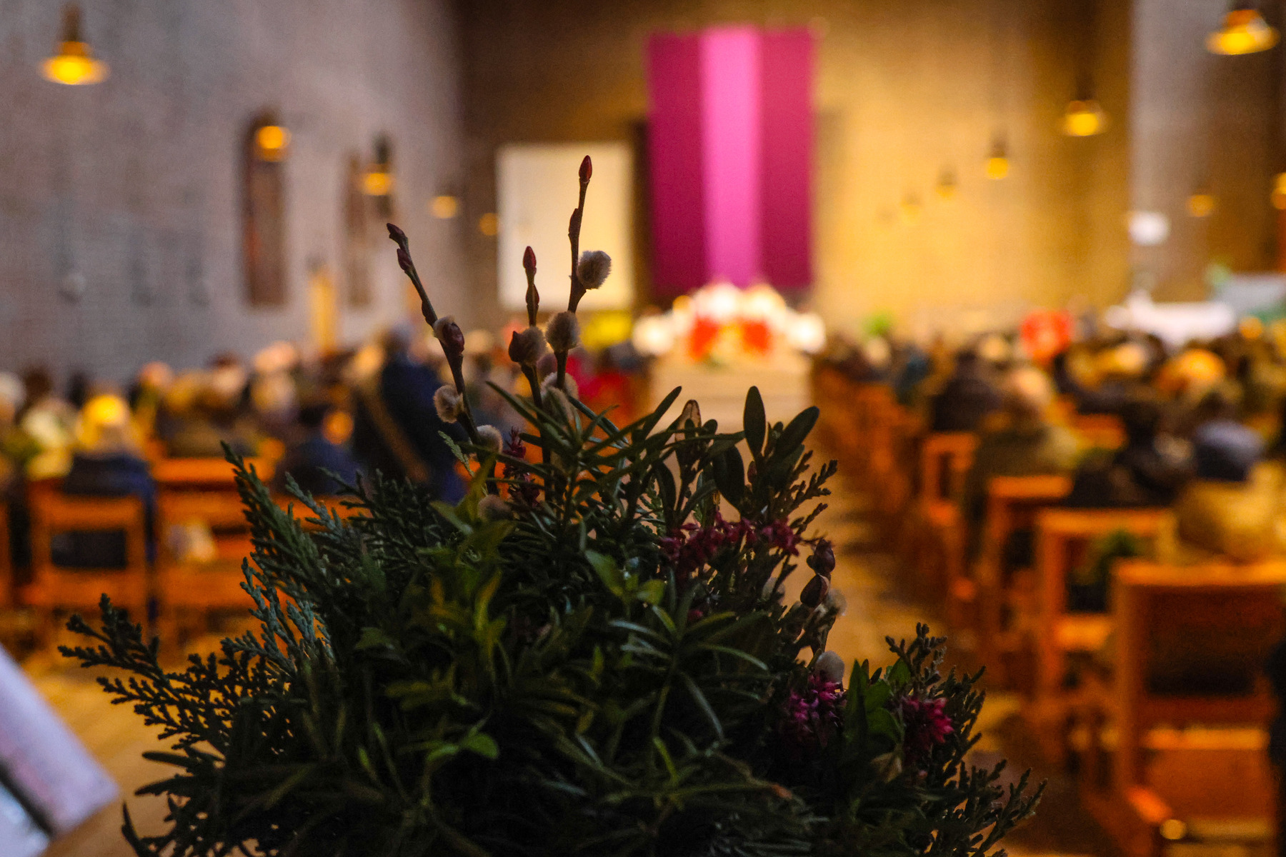 Der Gottesdienst am Palmsonntag beginnt traditionell mit der Segnung der Palmzweige. Viele Gottesdienstbesucherinnen und Besucher haben sich dafür in unserer Kirche eingefunden. Als "Sonntag der Gegensätze" wird der Palmsonntag auch gerne bezeichnet, denn im weiteren Verlauf des Gottesdienstes steht auch die Leidensgeschichte im Zentrum. Vom "umjubelten Empfang mit Palmzweigen" zum "ans Kreuz mit ihm" war es offenbar ein schmaler Grad, so sind sich Liturgen einig.