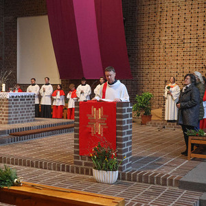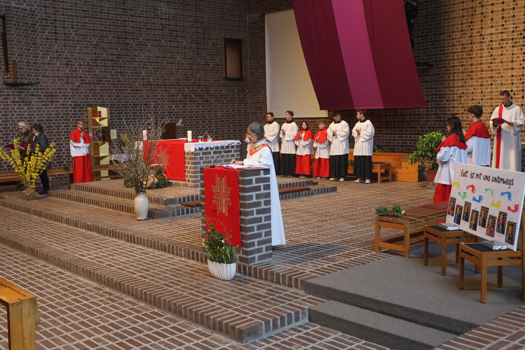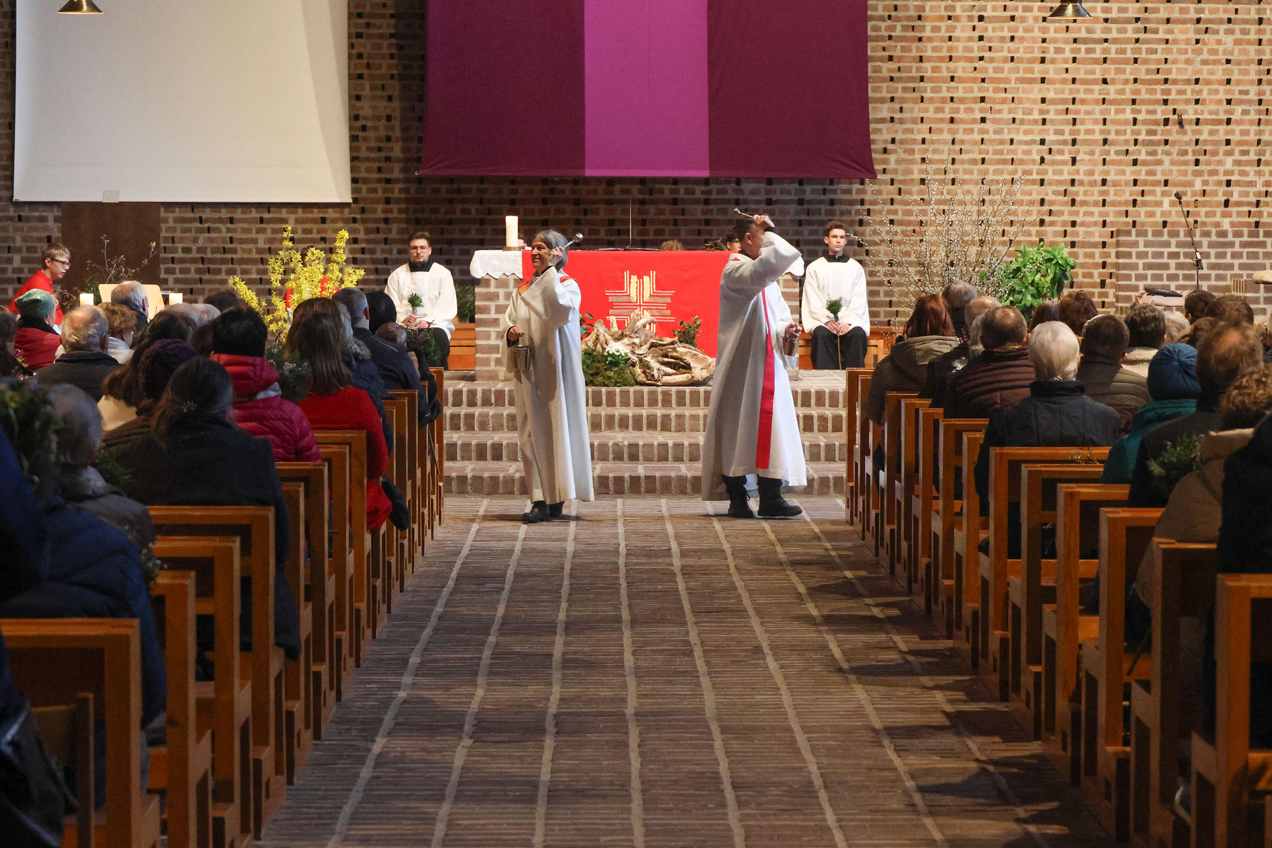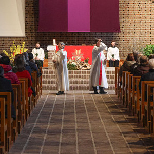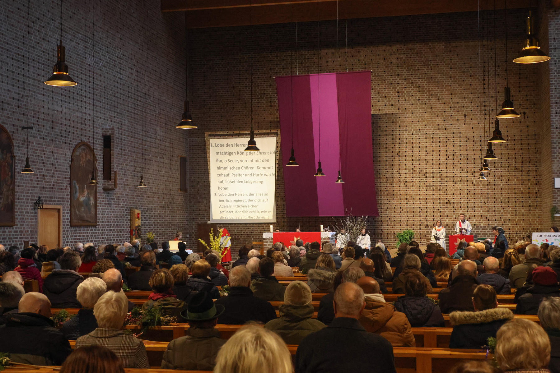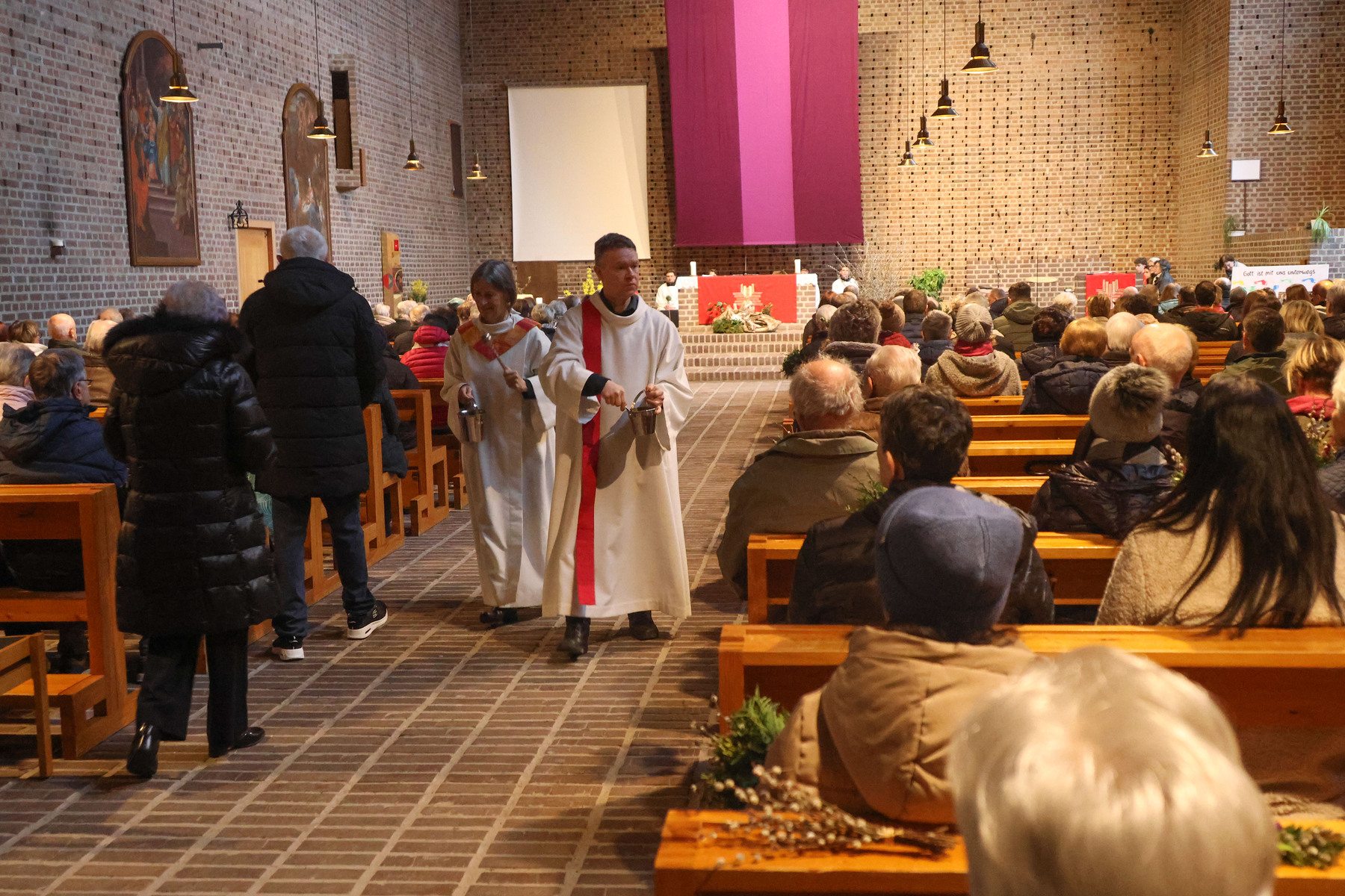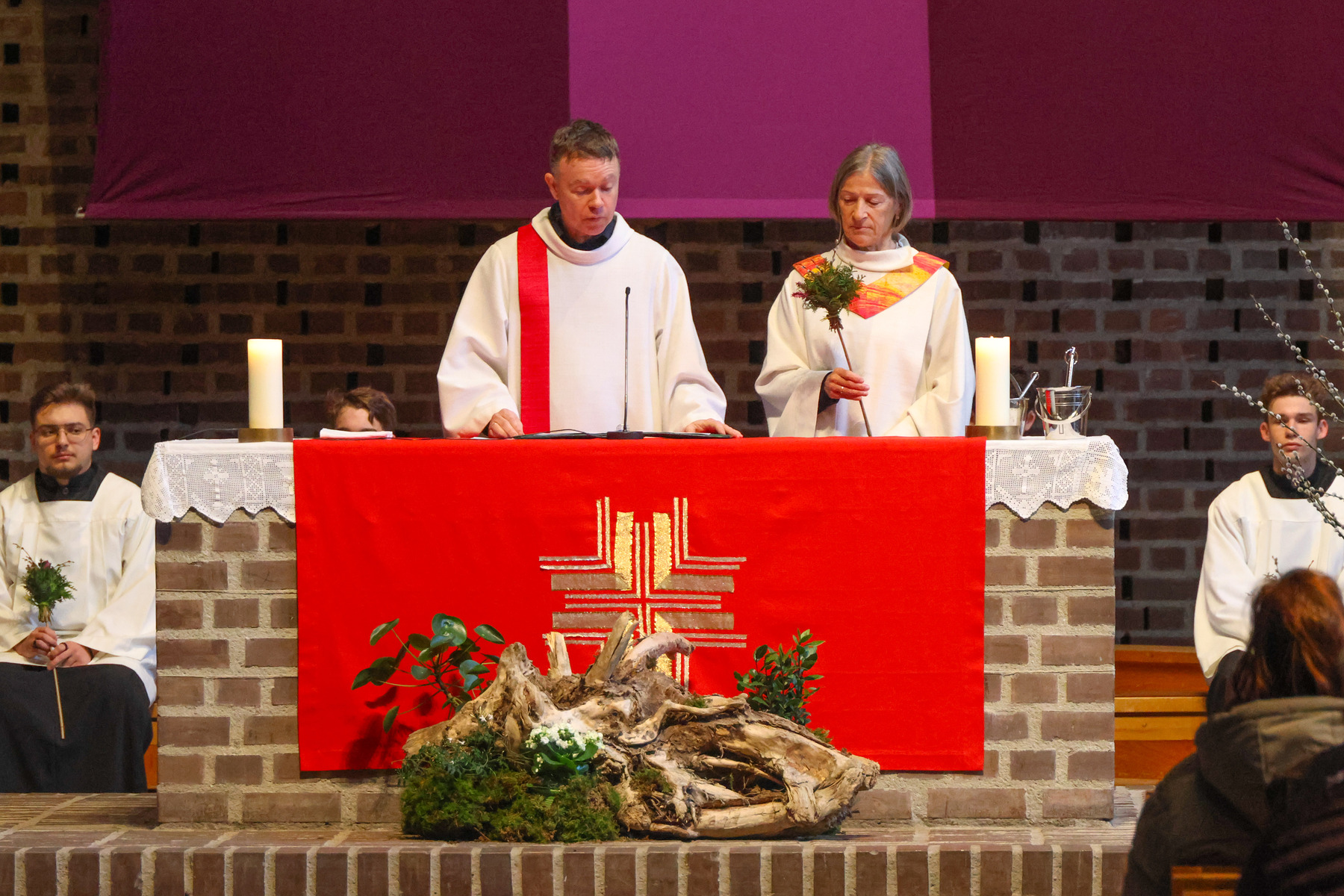 Der Gottesdienst am Palmsonntag beginnt traditionell mit der Segnung der Palmzweige. Viele Gottesdienstbesucherinnen und Besucher haben sich dafür in unserer Kirche eingefunden. Als "Sonntag der Gegensätze" wird der Palmsonntag auch gerne bezeichnet, denn im weiteren Verlauf des Gottesdienstes steht auch die Leidensgeschichte im Zentrum. Vom "umjubelten Empfang mit Palmzweigen" zum "ans Kreuz mit ihm" war es offenbar ein schmaler Grad, so sind sich Liturgen einig.