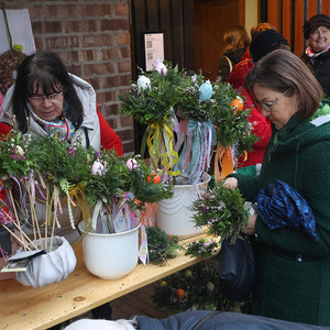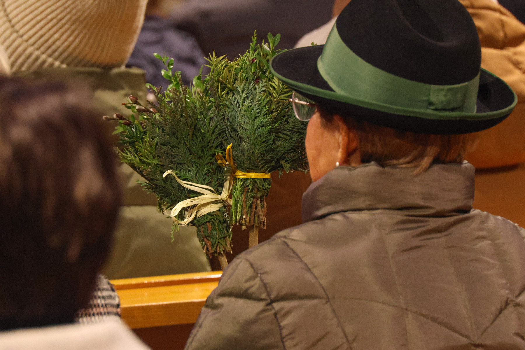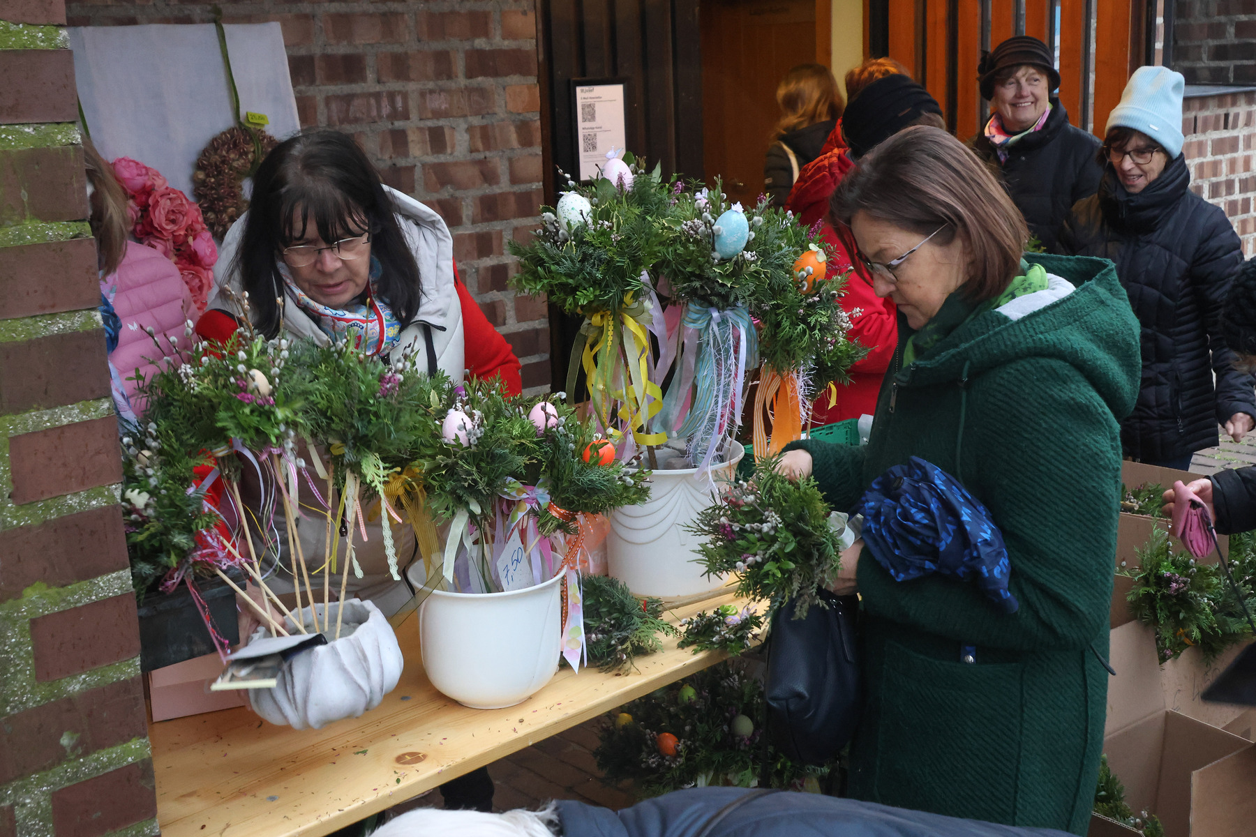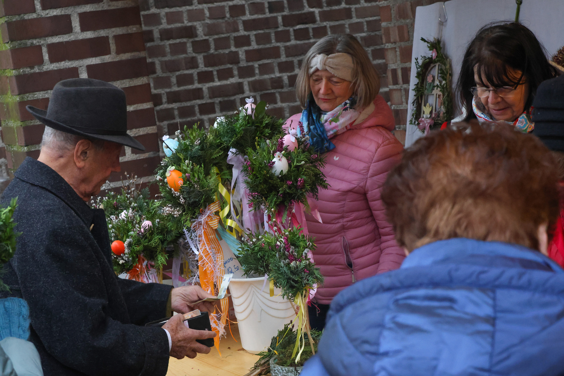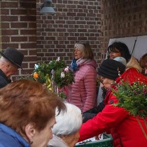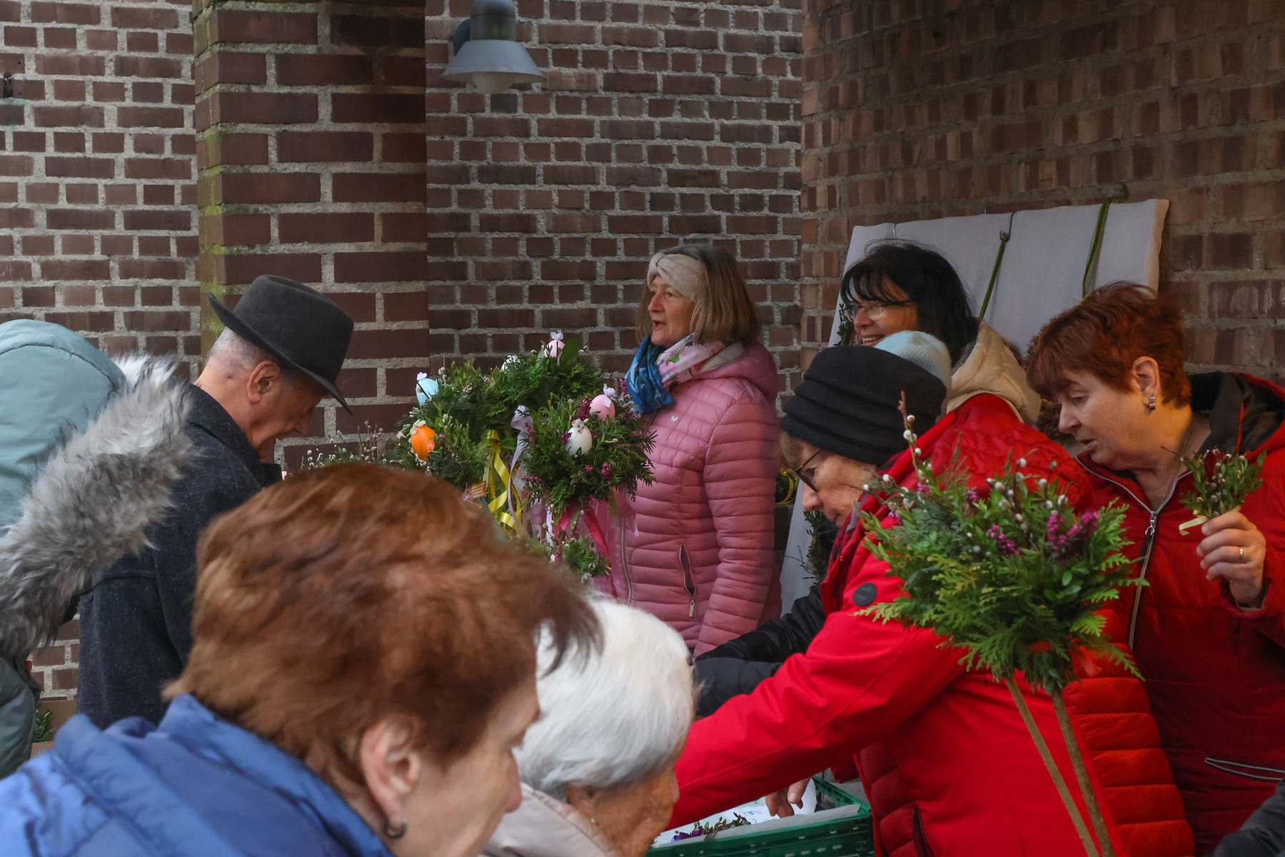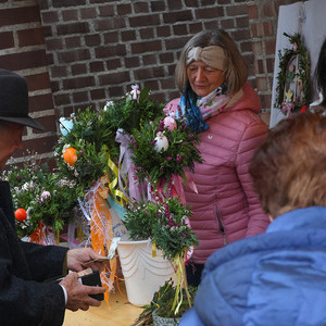 Großer Andrang herrschte am Sonntag am Kirchenplatz bereits vor dem Gottesdienst beim Verkauf der Palmbuschen, die von vielen fleißigen Helferinnen und Helfern in den Tagen zuvor liebevoll gestaltet wurden.