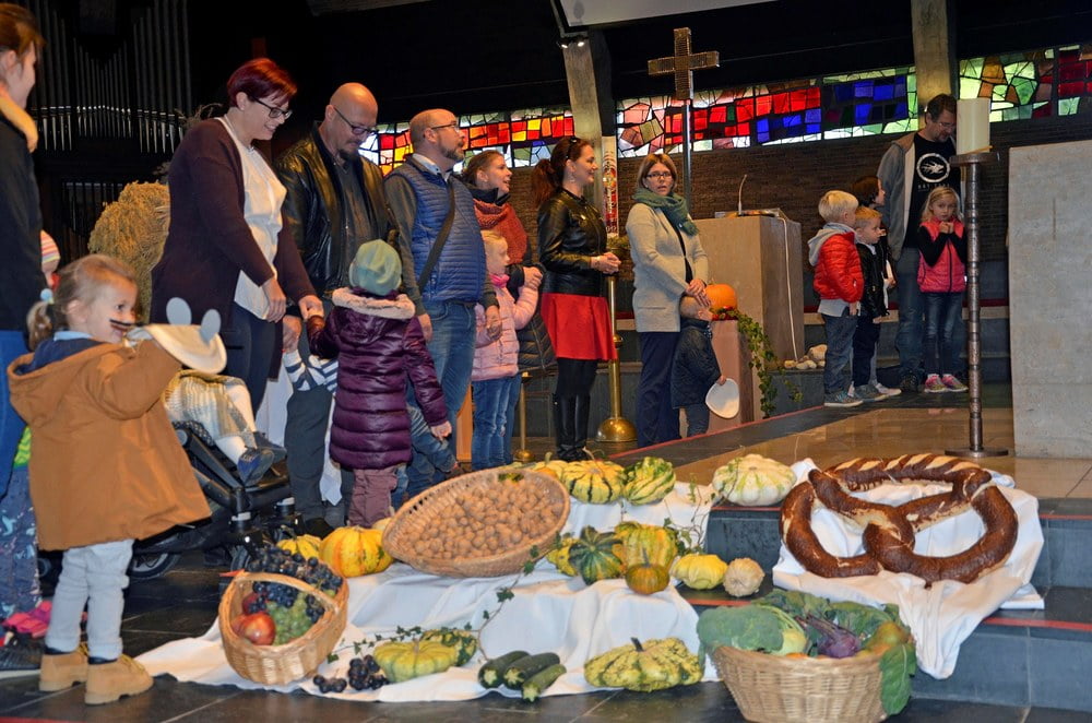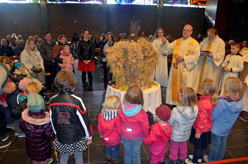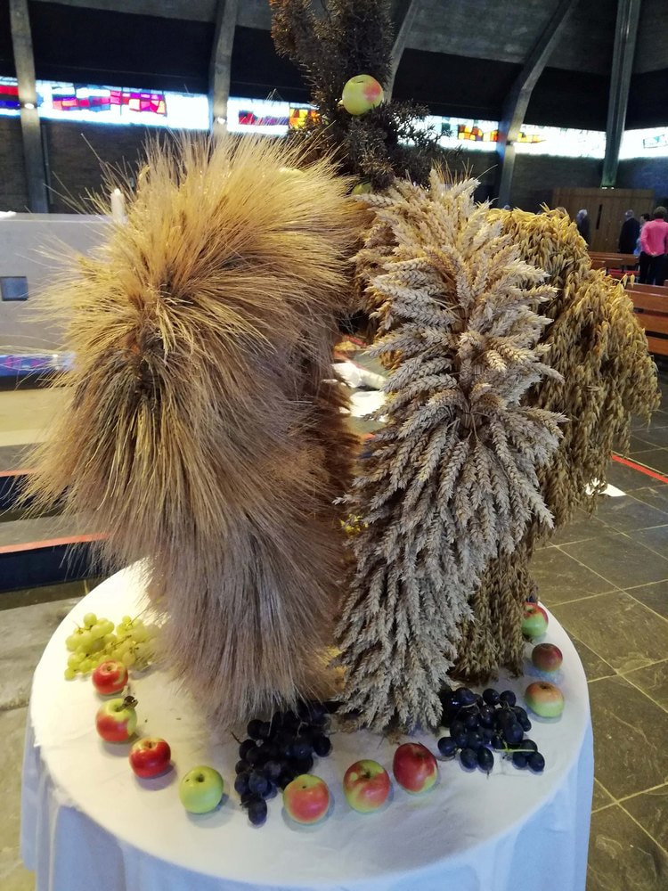 Danke an den Kinderliturgiekreis, Wilfried und Band, für die prächtige Erntedankkrone und den Spenden für die Dekoration,.......