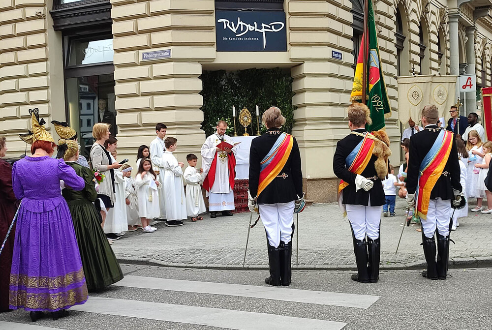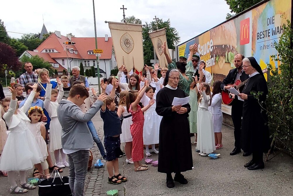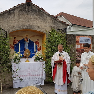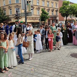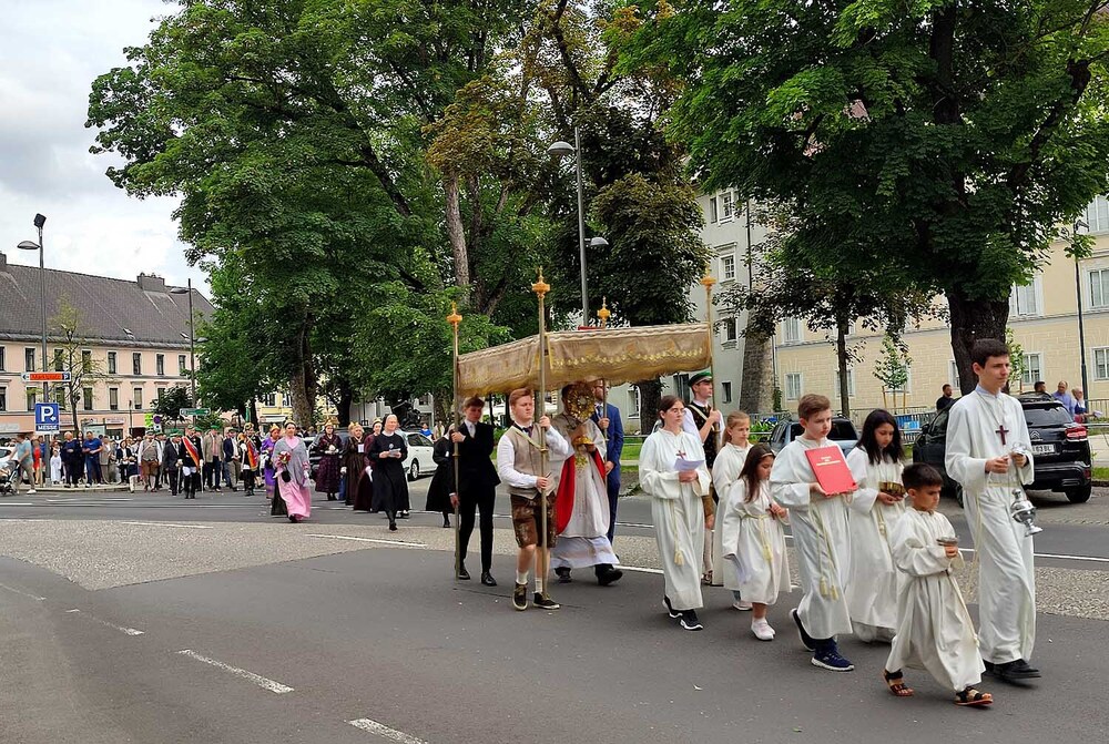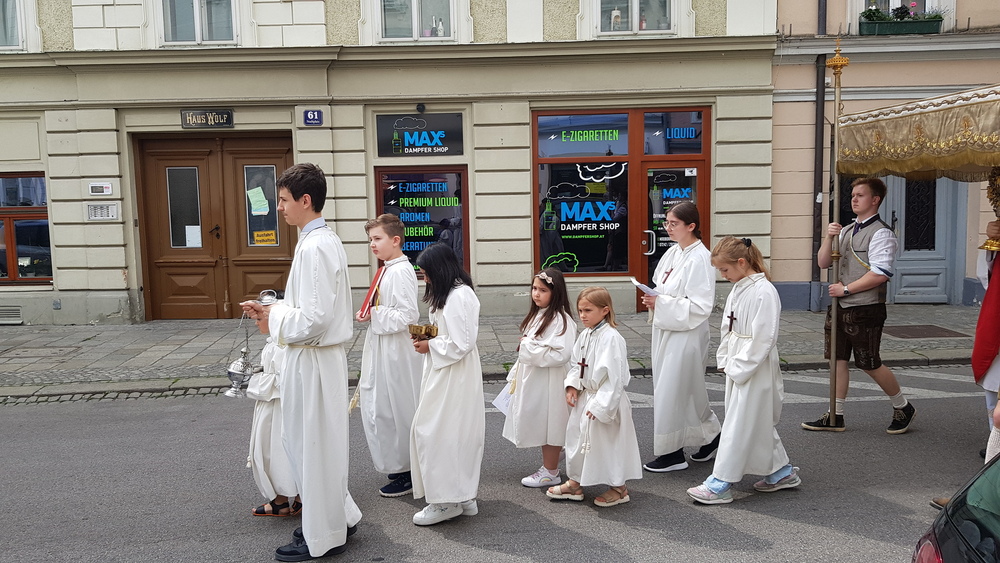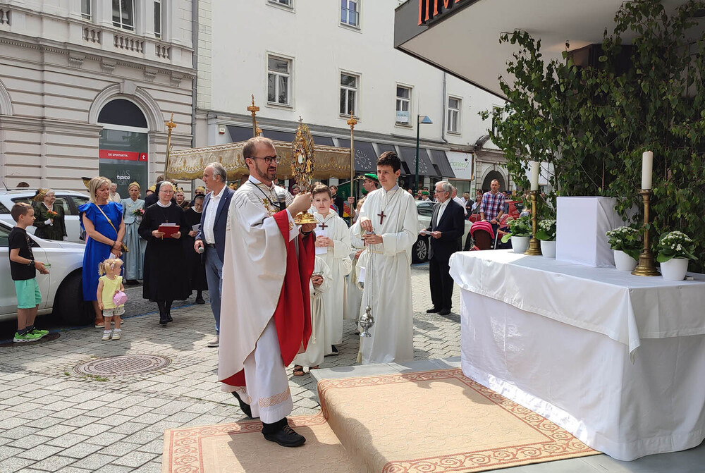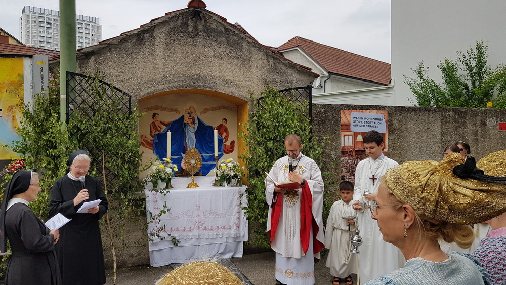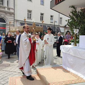 Der Liturgiefachausschuss hatte die Feier vorbereitet, die inhaltliche Gestaltung bei den vier Altären erfolgte von der Katholischen Frauen- und Männerbewegung, den geistlichen Schwestern mit den Erstkommunionkindern und von der Katholischen Studentenverbindung Traungau.
