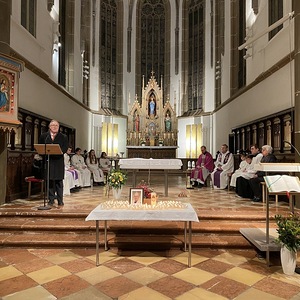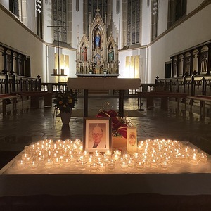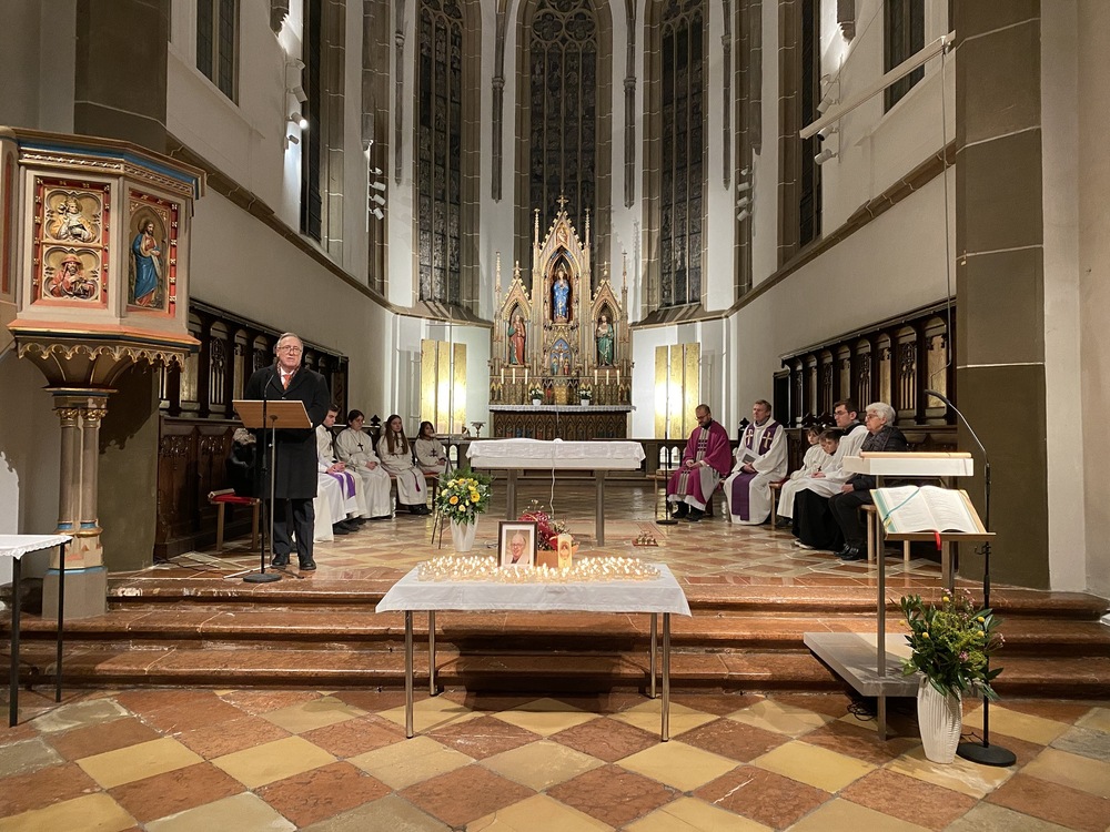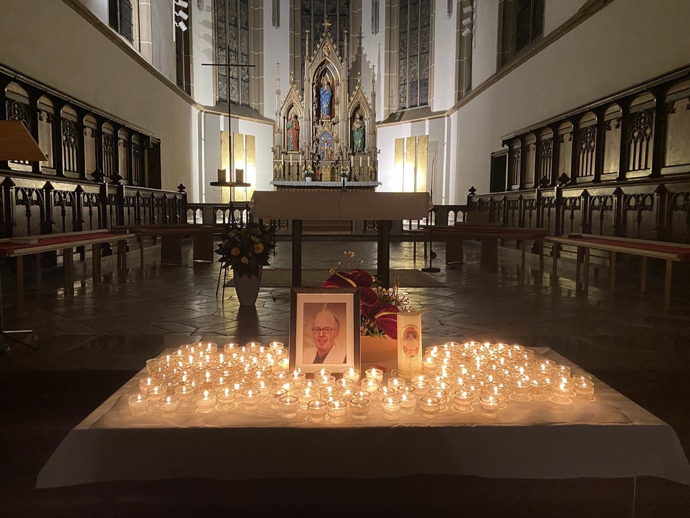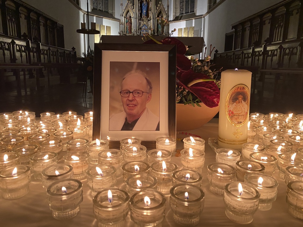 Die Messbesucher:innen konnten auf einem Tisch vor dem Altarraum Gedenkkerzen anzünden. Neben Pfarrer Niko Tomić feierten auch Generaldechant Slawomir Dadas und Jungpriester Klemens Langeder, der in unserer Pfarre ein Praktikum absolviert hatte, die Heilige Messe. Bei der Predigt zitierte Slawomir Dadas aus drei Artikeln, die Herr Kirchweger während seiner Studienzeit verfasst hatte, und holte ihn auch auf diese Weise noch einmal in unsere Mitte.