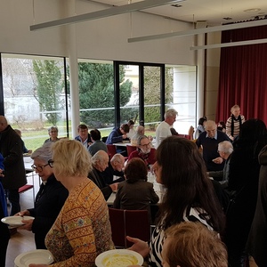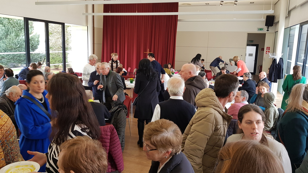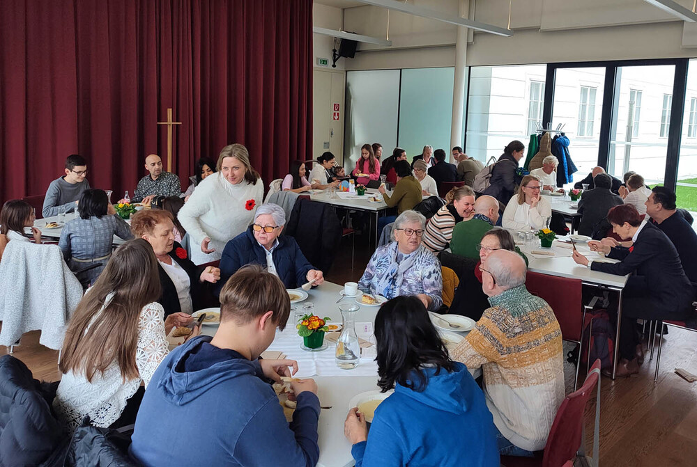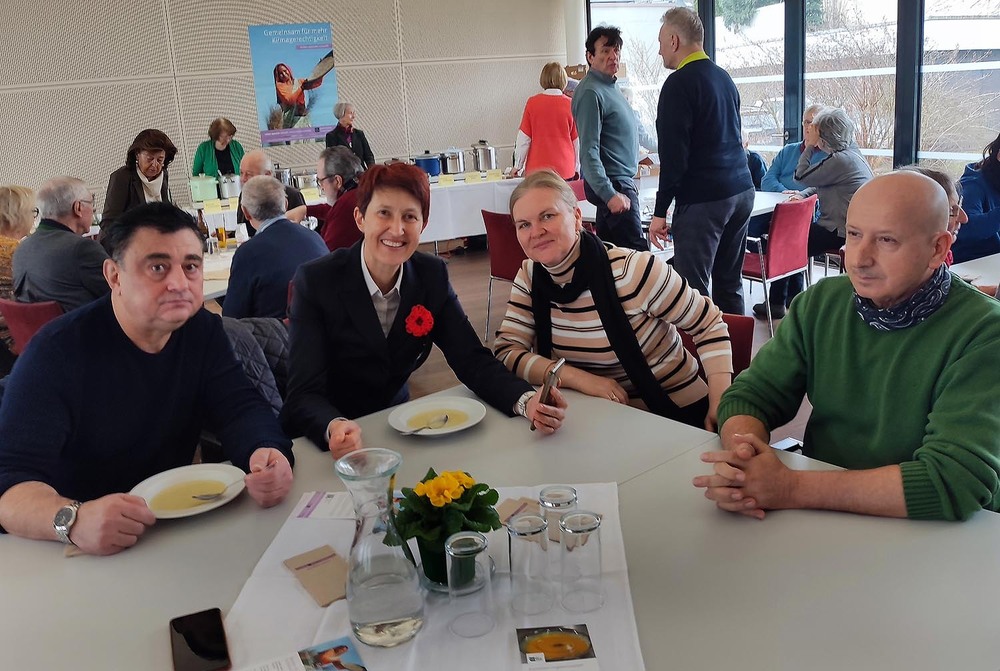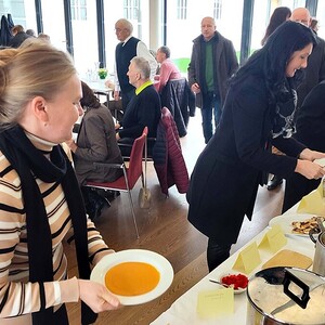 Der Pfarrsaal vorbereitet, die Tische gedeckt, das Suppenbuffet angerichtet,