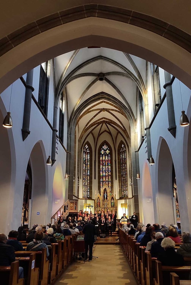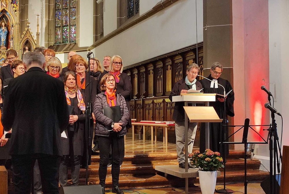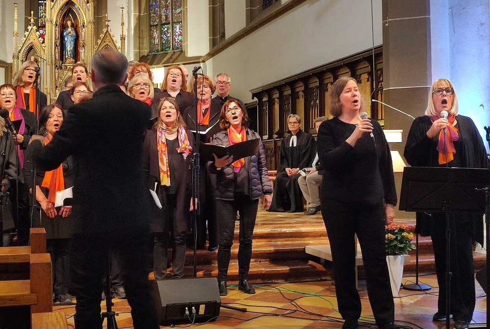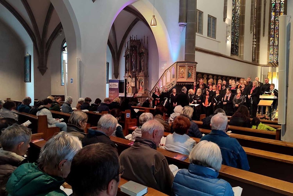 Musikalisch begleitet vom Chor "Choice of Voice" unter der Leitung von Wolfgang Graziani. Anschließend gab dieser Chor Gospels, frisch aus den USA importiert, zum Besten.