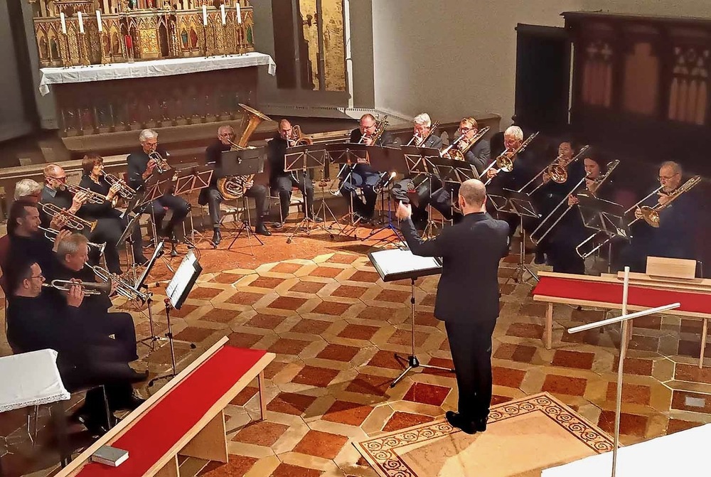 Und zum Abschluss erfreute uns erstmals der Posaunenchor Wels, Ltg. Martin Köberl, mit Trompeten, Posaunen und einer Tuba in der Stadtpfarrkirche.