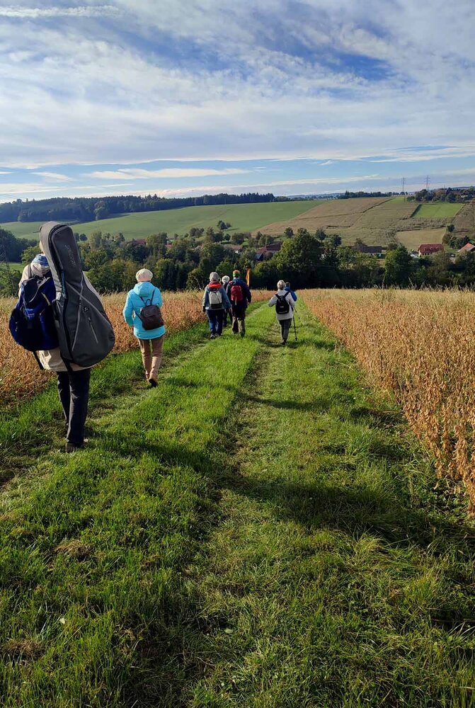 Wir setzten unseren Weg anschließend durch den östlichen Ortsteil fort, erkundeten auf dem Rückweg Ortschaften wie Pühret, Kochlöffleck und Anzenberg und freuten uns über die Sonnenstrahlen, die wir dem Wetterbericht zufolge nicht erwartet hätten. Bei einer Kapelle gab es noch einmal einen Impuls zur Schöpfungszeit, die mit dem 4. Oktober, dem Gedenktag des Heiligen Franz von Assisi endete. Auf unserem Rückweg über Feld-, Wald- und Wiesenwege wurden wir sogar noch zu Rettern eines entlaufenen Schafs. Um ca. 17.00 Uhr kehrten wir schließlich zum Bahnhof Grieskirchen zurück. Beinahe schon Flashmob-Charakter hatte unser Abschied am Welser Bahnhof, wo wir noch den Kanon „Lobet und preiset, ihr Völker, den Herrn“ anstimmten.