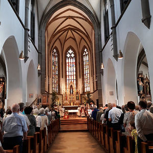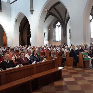 Nach dem 'Großer Gott, wir loben dich' und dem Applaus für die Eisenbahnermusikkapelle ließen sich alle gerne zu Speis und Trank ins Pfarrzentrum einladen.
