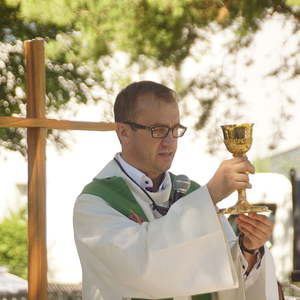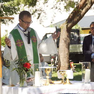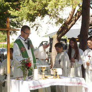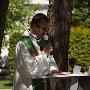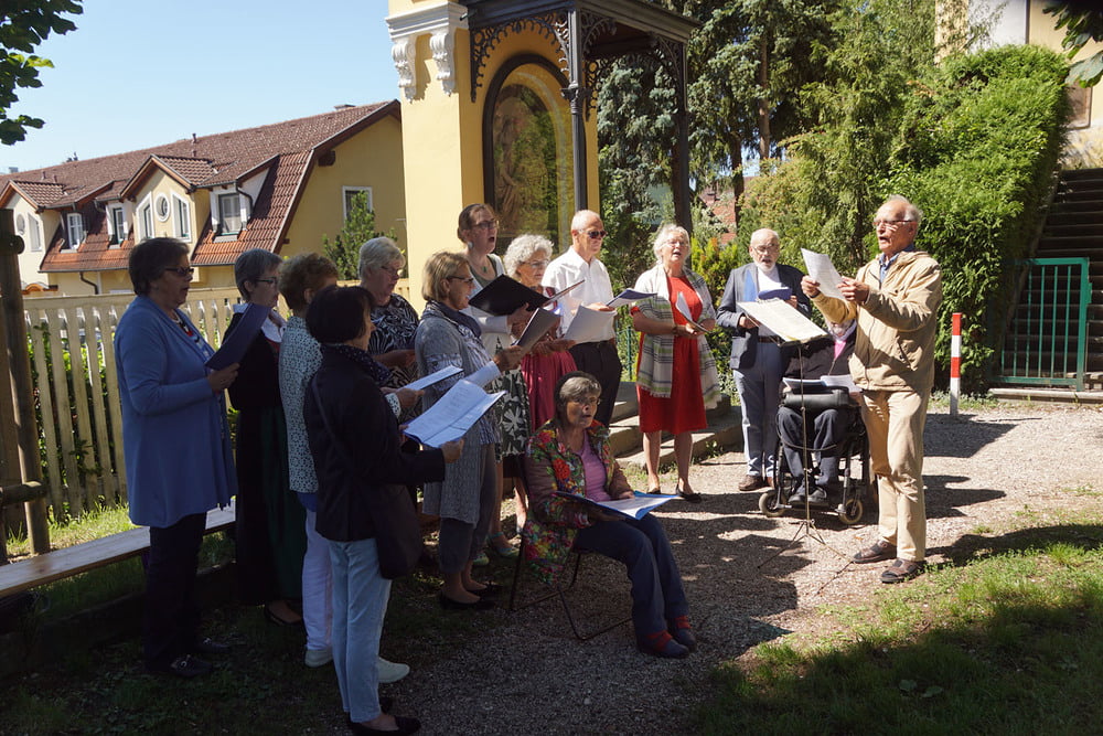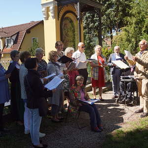 Von fleißigen Helfern des Pfarrgemeinderates wurde ein Altartisch vorbereitet und gedeckt, sowie Sitzgelegenheiten für die Feiergemeinde aufgestellt. Pfarrprovisor Mag. Niko Tomic erwähnte, dass im Jahr 1718, also vor genau 300 Jahren, in der Kalvarienbergkirche die erste Hl. Messe gefeiert wurde. Die musikalische Gestaltung des Gottesdienstes hatte der Kirchenchor unter der Leitung von Prof. Walther Derschmidt übernommen.