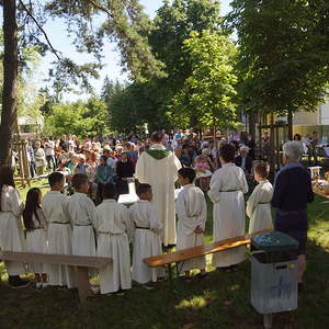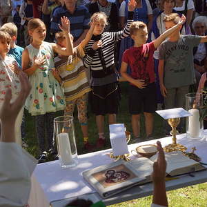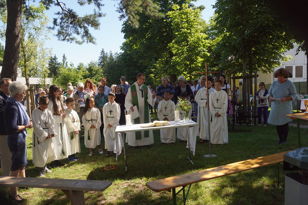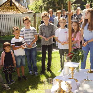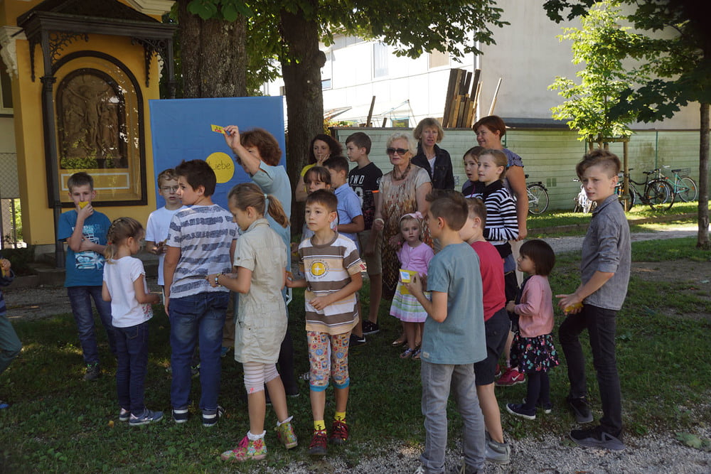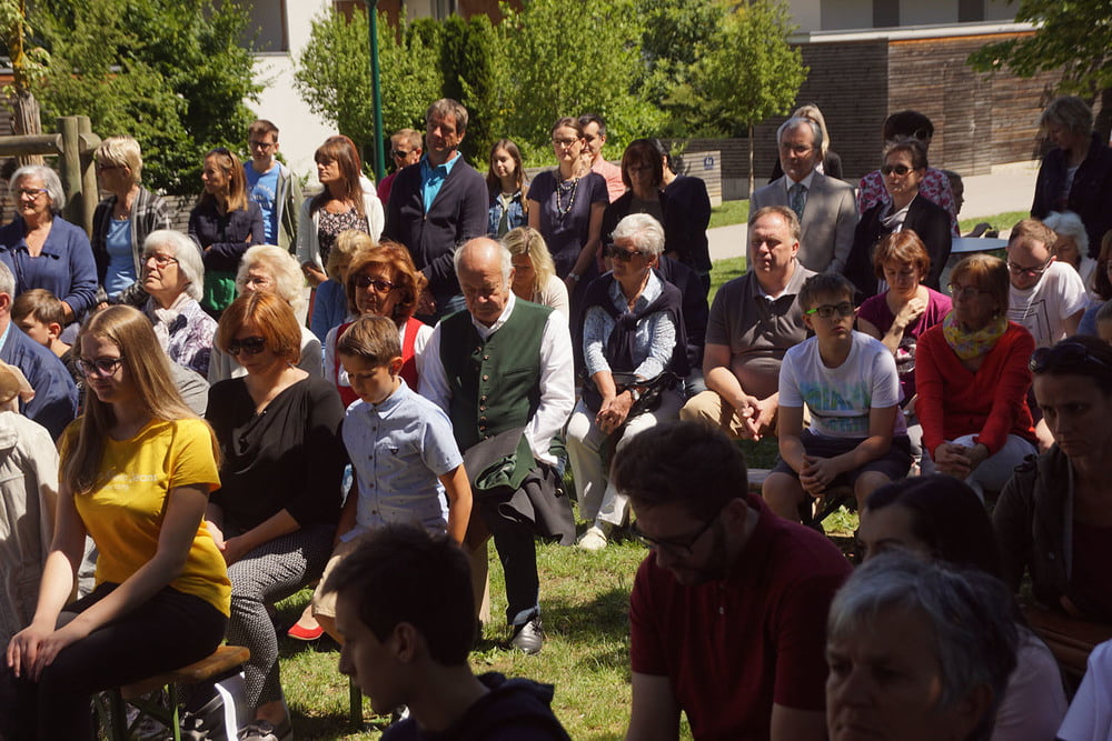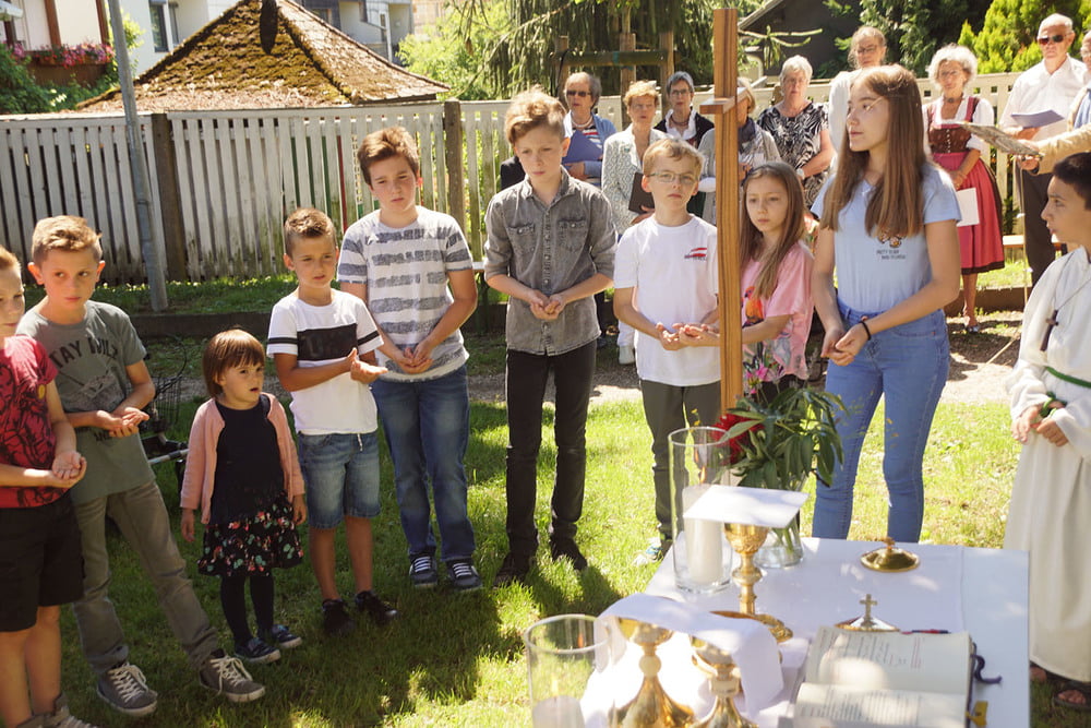 Von PasAss Katharina Mayer-Jetzinger wurde ein Kinderelement gestaltet. Beim 'Vater Unser' erfreuten sich alle an der großen Schar der jüngsten Mitfeiernden. Im Anschluss erfolgte die Einladung zur Agape. Bei Brot und Wein fand der Sonntagvormittag, begünstigt durch prachtvolles Sommerwetter, einen gemütlichen Ausklang.