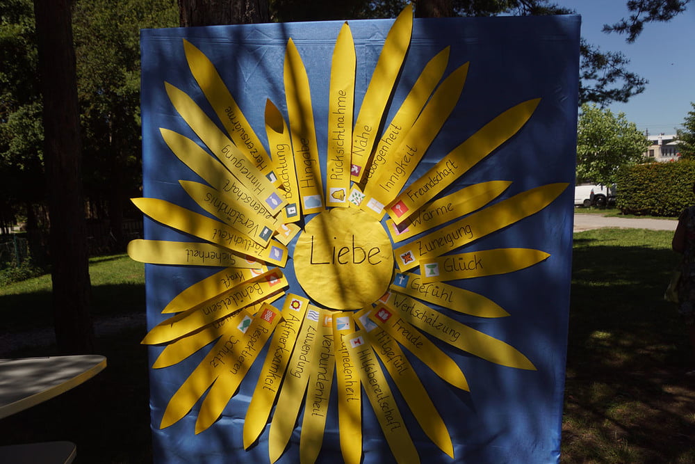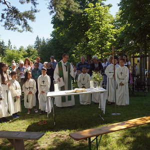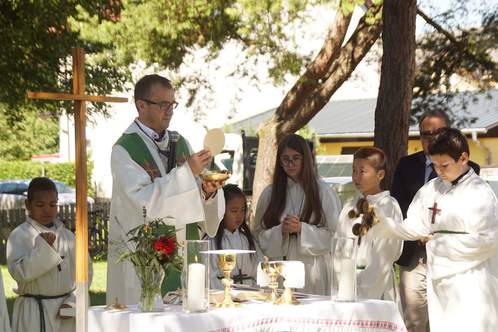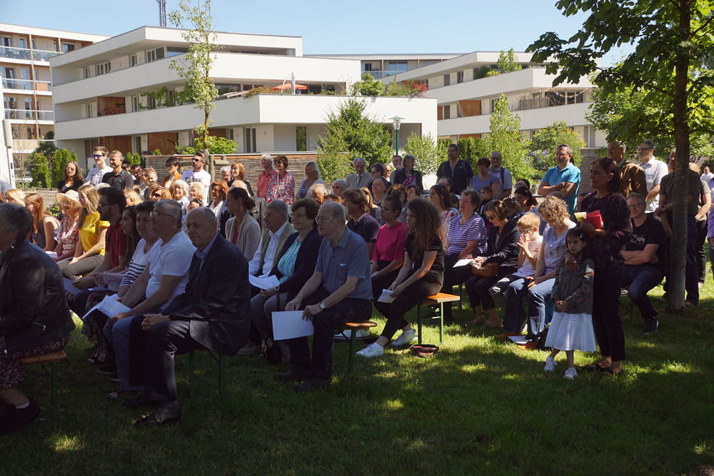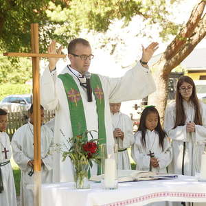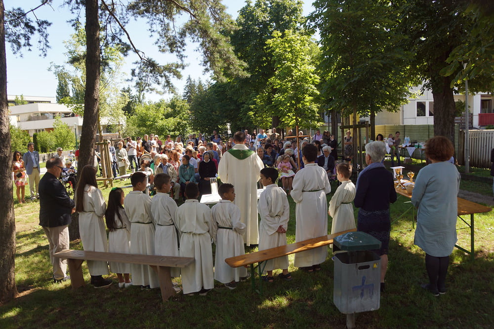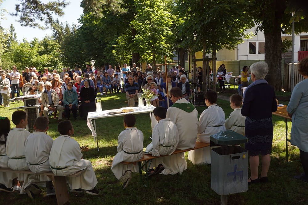 Von PasAss Katharina Mayer-Jetzinger wurde ein Kinderelement gestaltet. Beim 'Vater Unser' erfreuten sich alle an der großen Schar der jüngsten Mitfeiernden. Im Anschluss erfolgte die Einladung zur Agape. Bei Brot und Wein fand der Sonntagvormittag, begünstigt durch prachtvolles Sommerwetter, einen gemütlichen Ausklang.