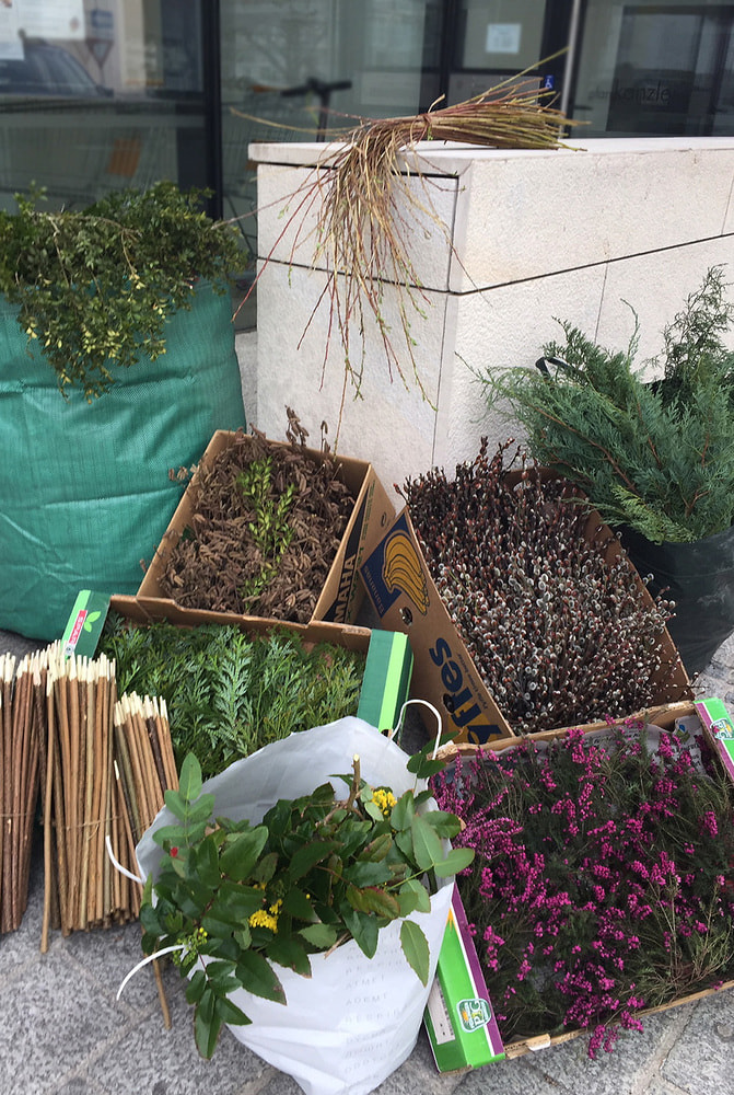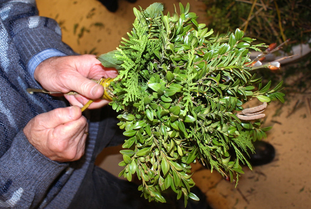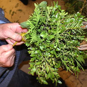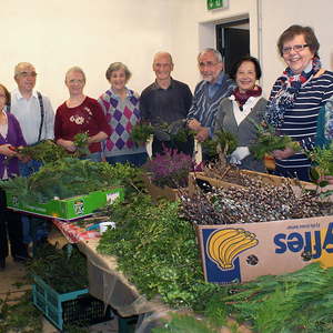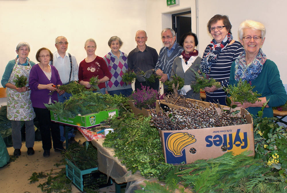 Auch heuer wurden von fleißigen Frauen und Männern wieder zahlreiche Buschen gebunden. Der Reinerlös floss heuer in die Sanierung von Kirchturm und Orgel.