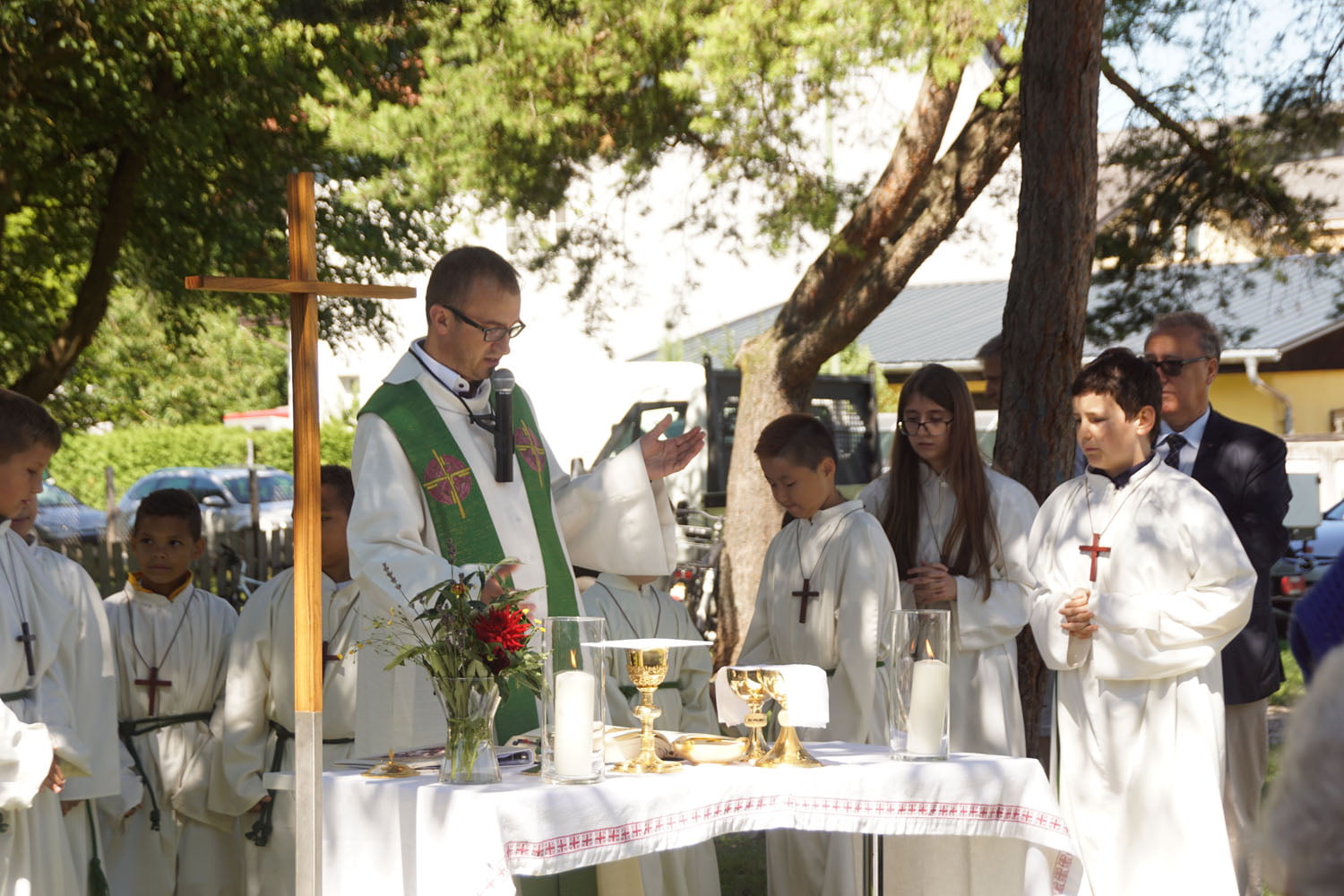 Von fleißigen Helfern des Pfarrgemeinderates wurde ein Altartisch vorbereitet und gedeckt, sowie Sitzgelegenheiten für die Feiergemeinde aufgestellt.