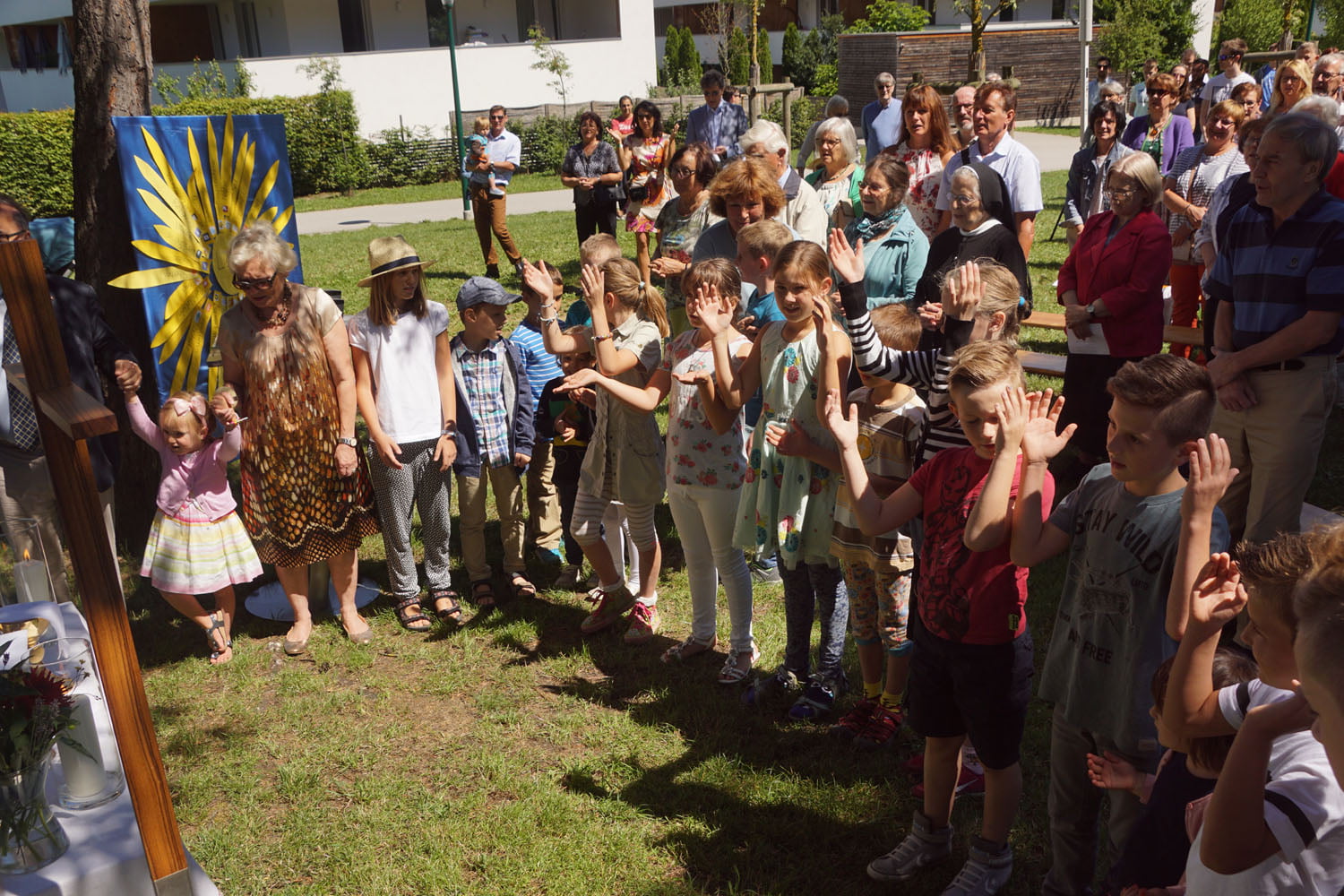 Von PasAss Katharina Mayer-Jetzinger wurde ein Kinderelement gestaltet. Beim 'Vater Unser' erfreuten sich alle an der großen Schar der jüngsten Mitfeiernden.