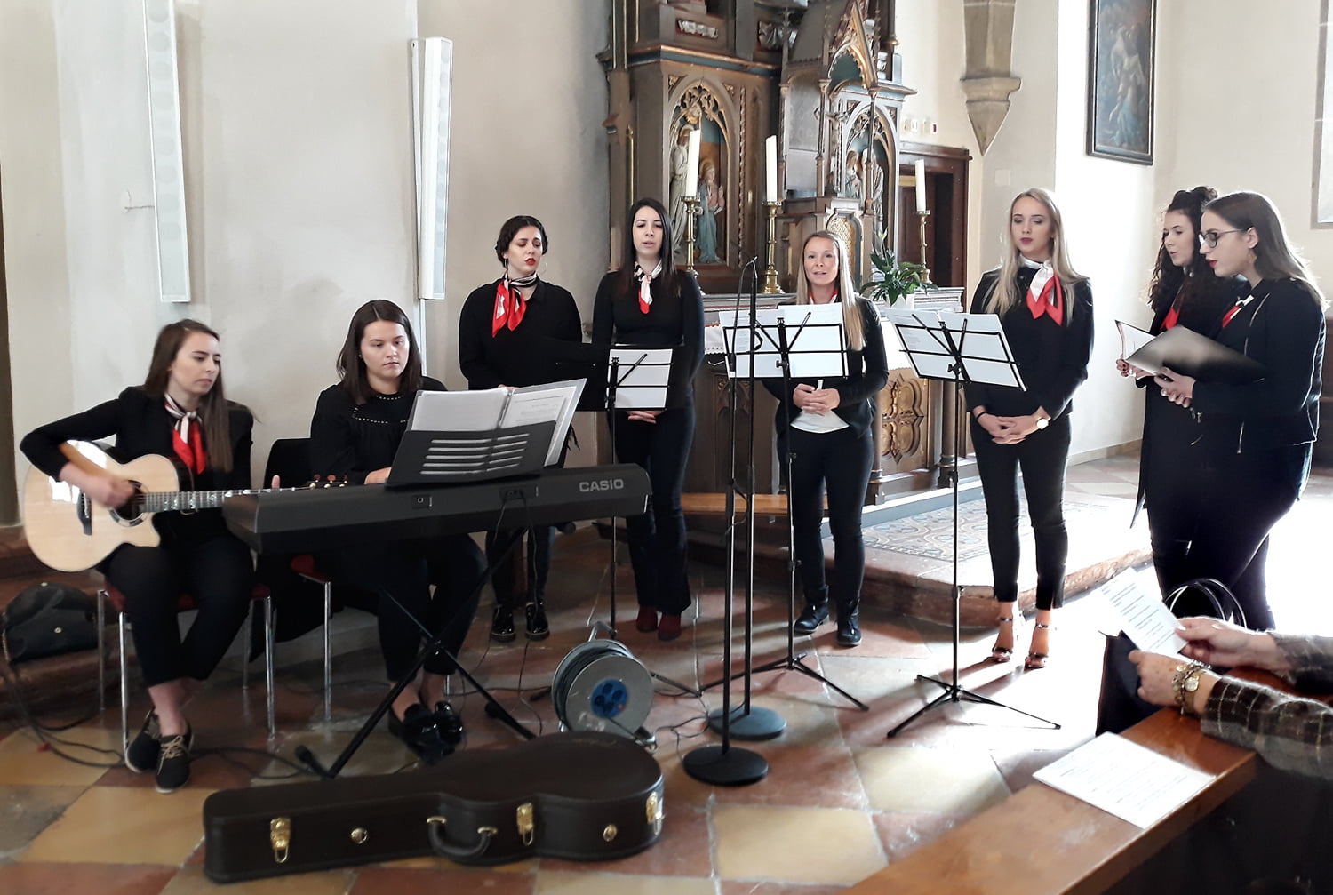 8 junge Frauen mit Geige, Klavier und Gesang verstärkten den Gemeindegesang enorm. Die Freude darüber brachten die Mitfeiernden durch spontanen Schlussapplaus zum Ausdruck.