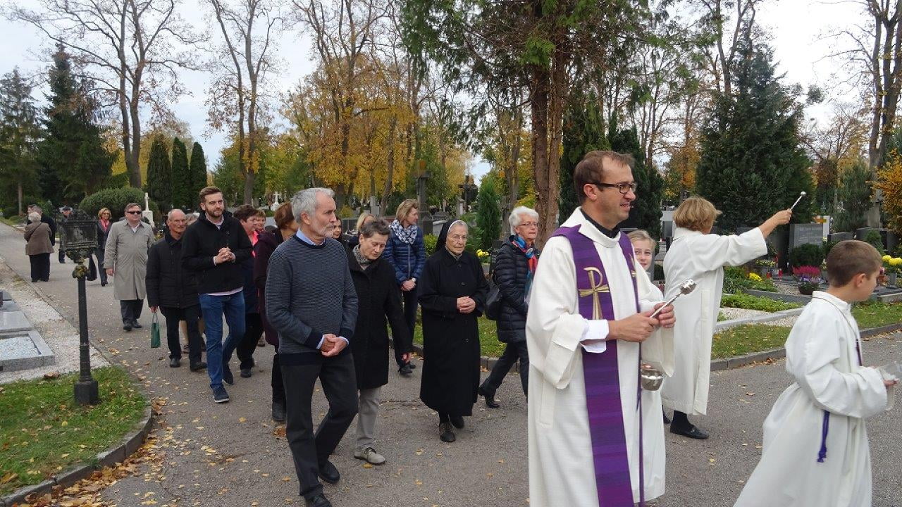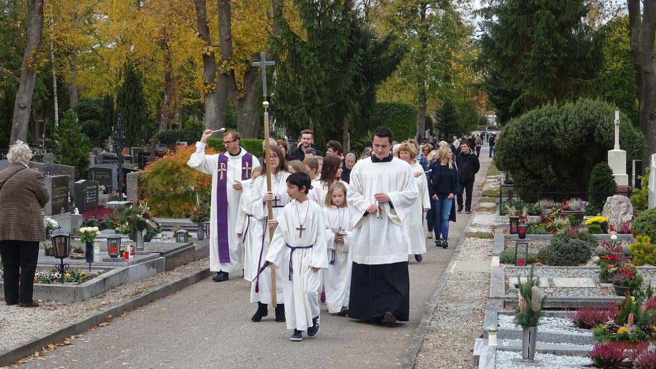 Nach dieser gemeinsamen Feier trennten sich die Wege und jede Pfarre machte sich zu ihrem Teil im Stadtfriedhof zur Gräbersegnung auf.