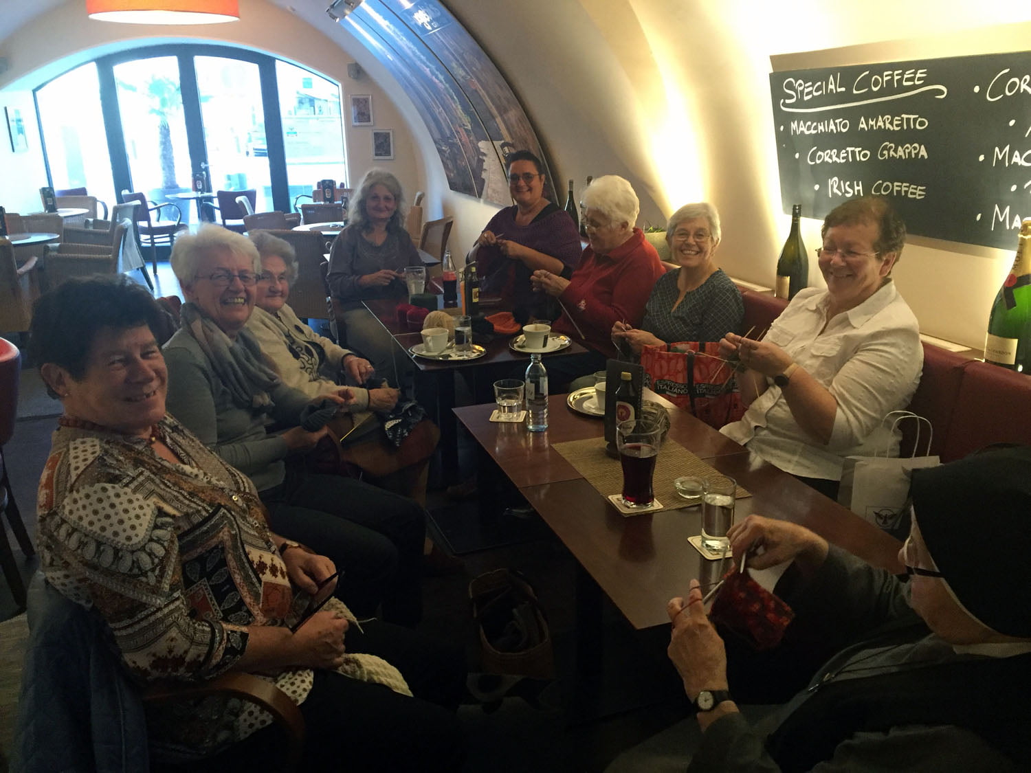 7 Wochen lang trafen sich insgesamt 12 strickbegeisterte Frauen jeweils Dienstag Nachmittag im Cafe Augustin´s am Stadtplatz zum 'Stricken gegen soziale Kälte'.