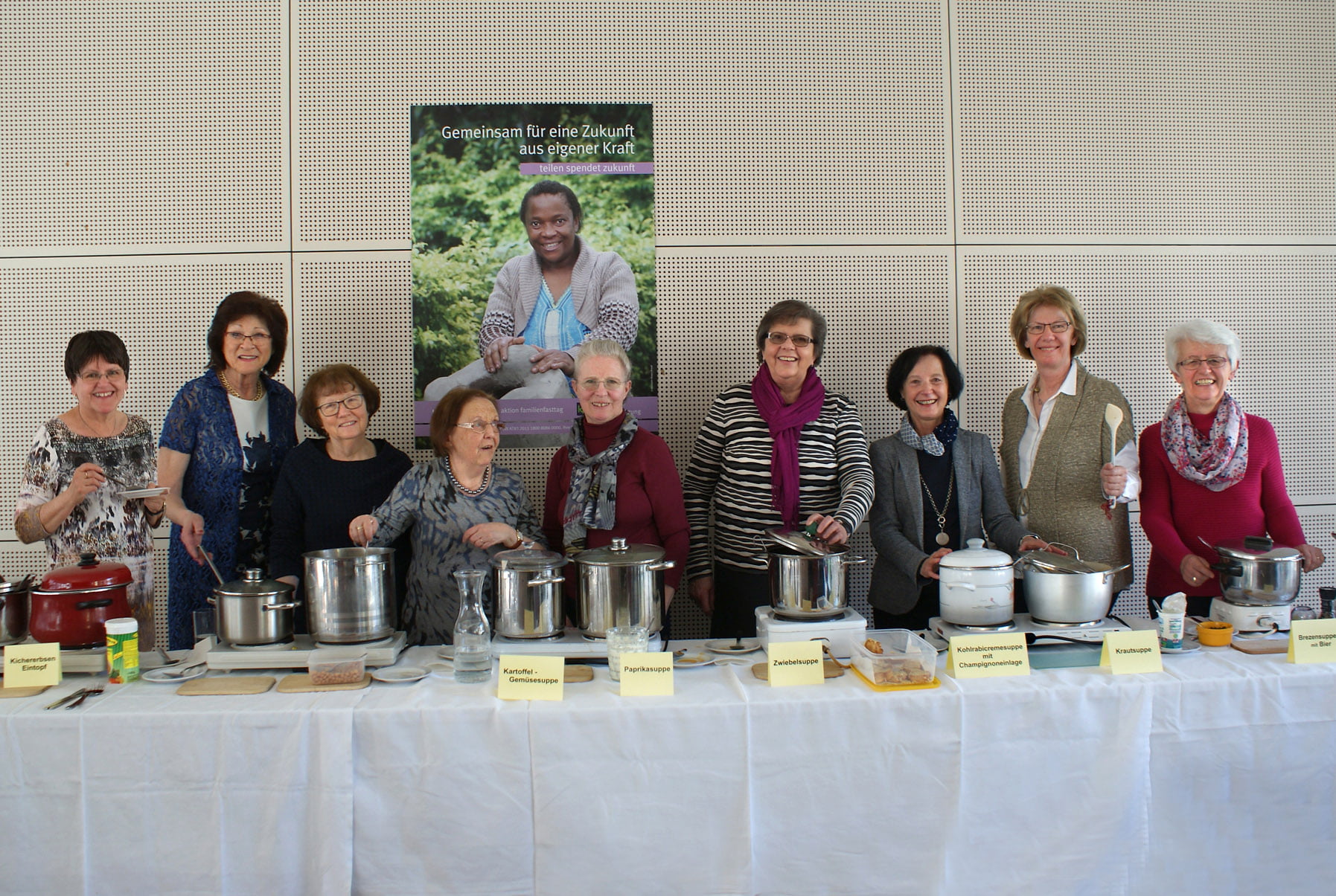 12 dampfende Suppen und Eintöpfe warteten im Pfarrsaal auf die Gottesdienstbesucher -