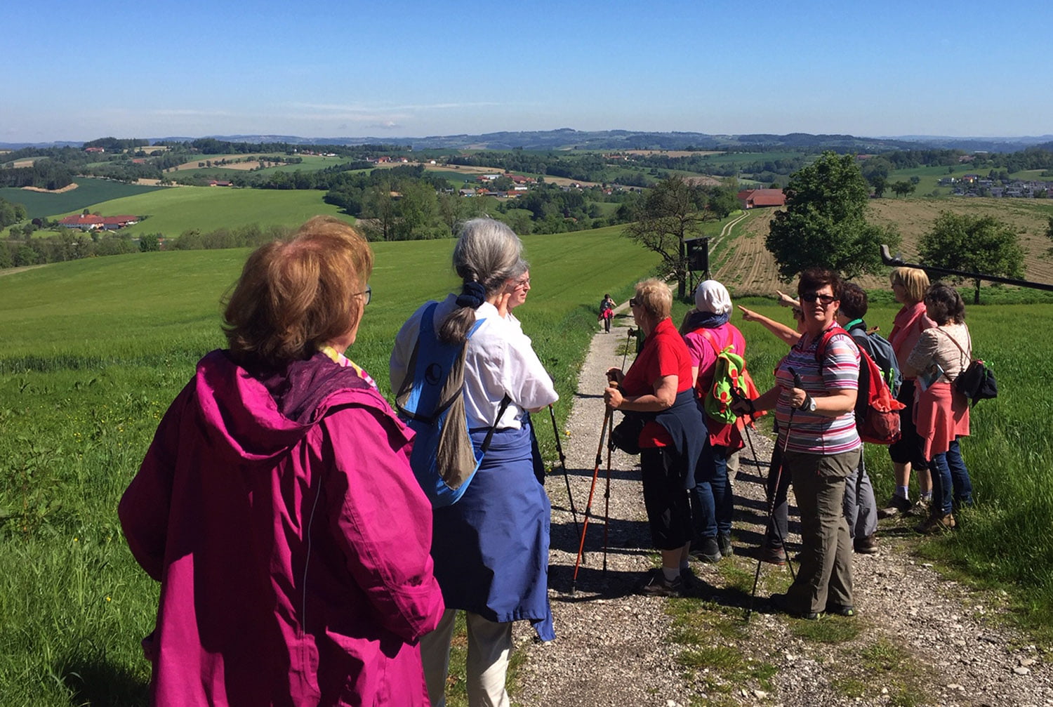 Nach der Begrüßung durch unsere Pilgerbegleiterin Maria Baumgartner und der Segnung des geschmückten Pilgerstabes startete die Gruppe der 56 kfb Frauen. Strahlender Sonnenschein begleitete uns an diesem herrlichen Frühlingstag auf der 7 km langen Strecke.