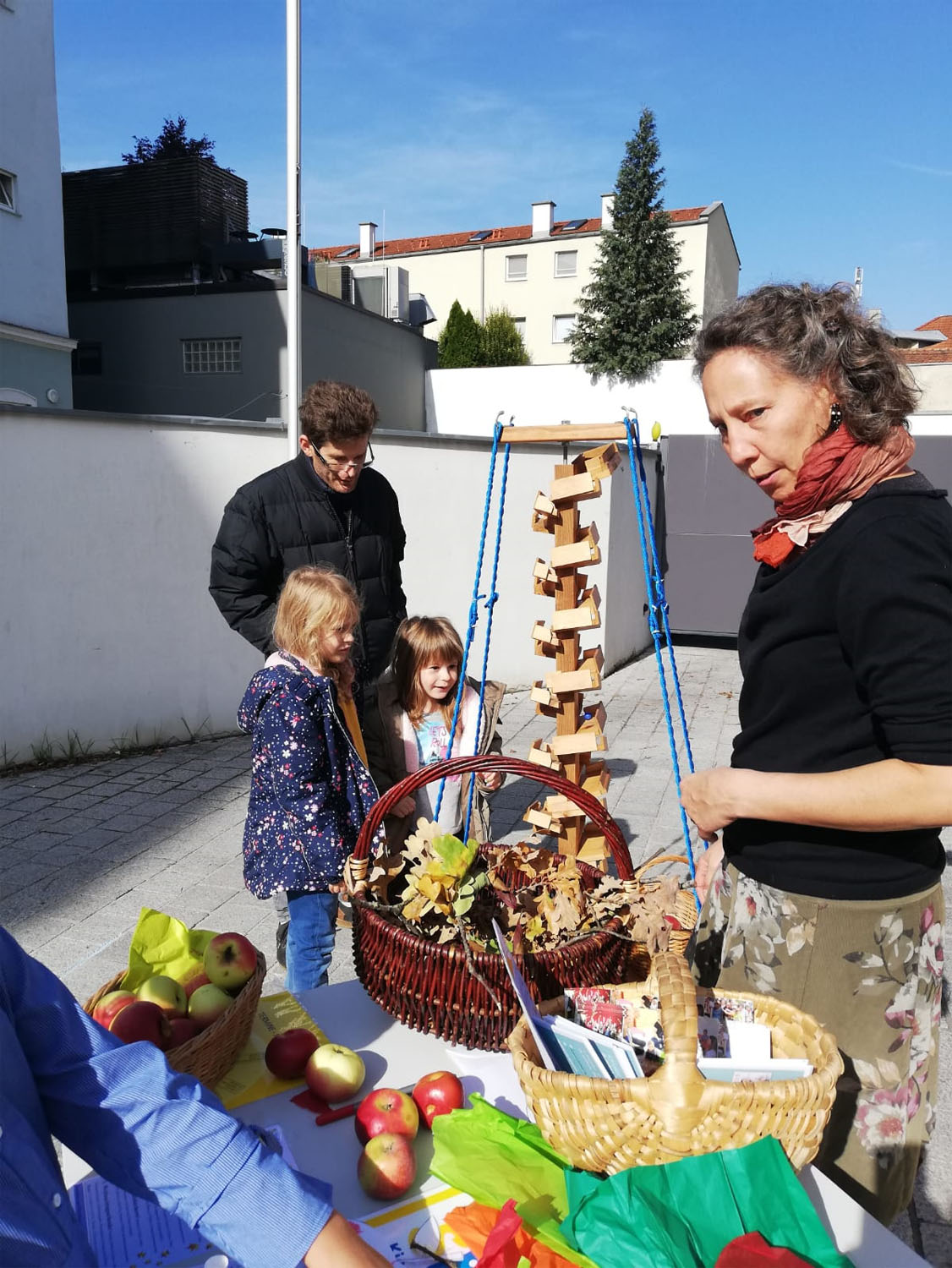Weiters gab es die Gelegenheit für junge Eltern das Angebot von 'Spiegel' (Eltern-Kind-Bildung) in unserer Pfarre kennen zu lernen. Spielgruppenleiterinnen Sandra und Mariella basteleten mit den Kindern Äpfel zum Aufhängen.