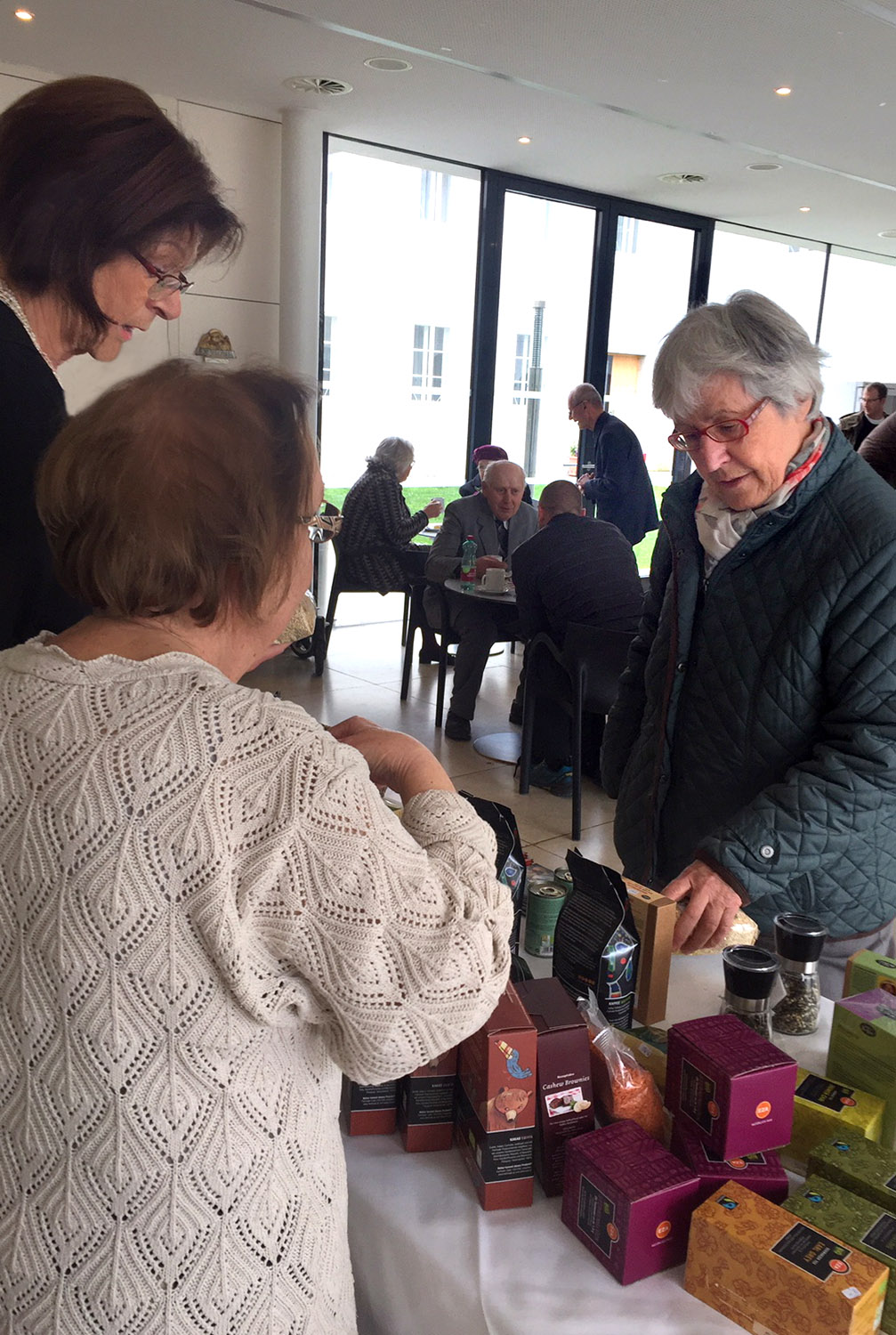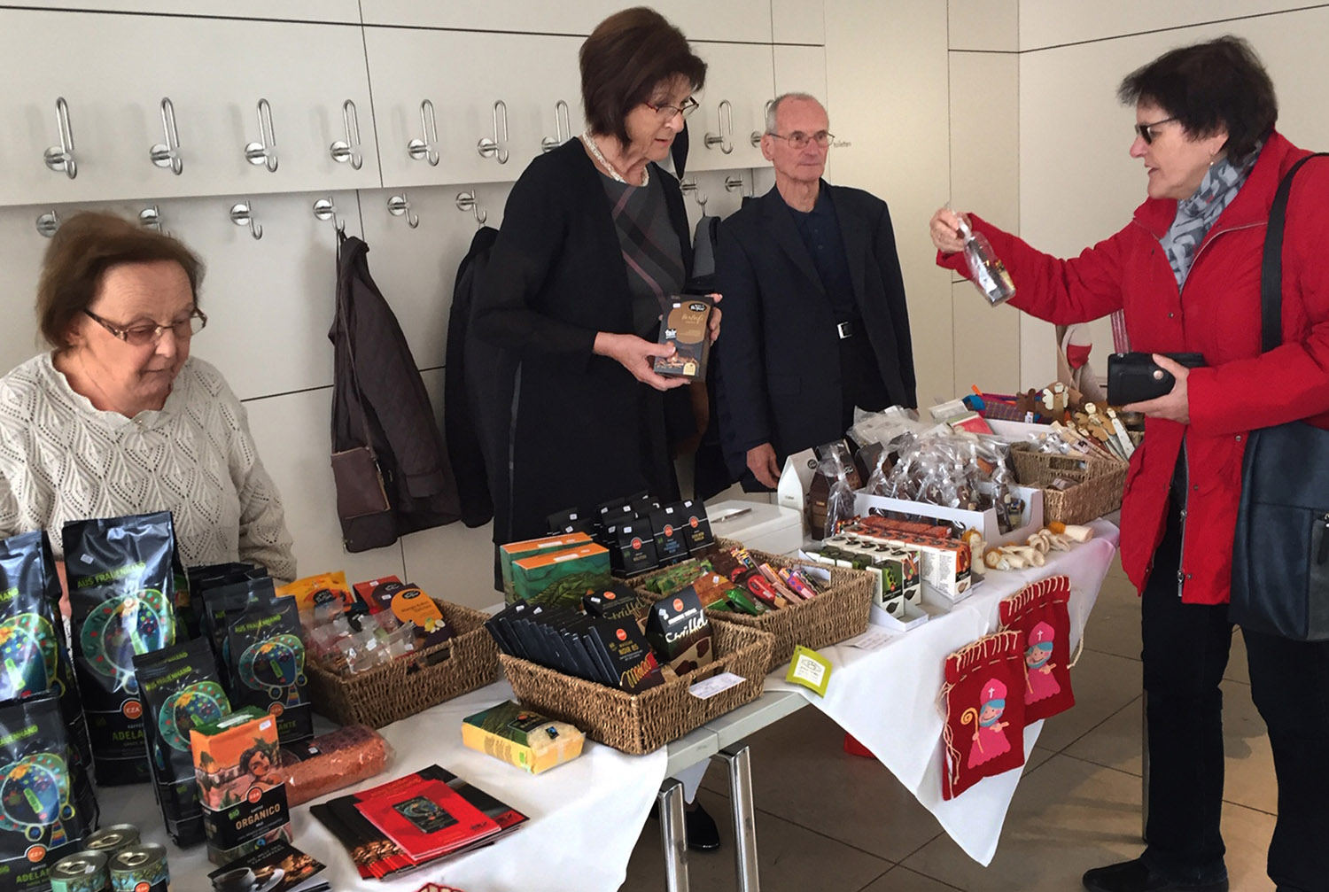 Was lag also näher, als beides zu verbinden und am 10. November im Pfarrzentrum fair gehandelte Produkte anzubieten, denn nur wenn wir die unter großer Mühe, ohne Ausbeutung von Natur und Mensch erzeugten Lebensmittel und Handwerkstücke auch erwerben, kann es nach und nach zu mehr Gerechtigkeit und Solidarität kommen.