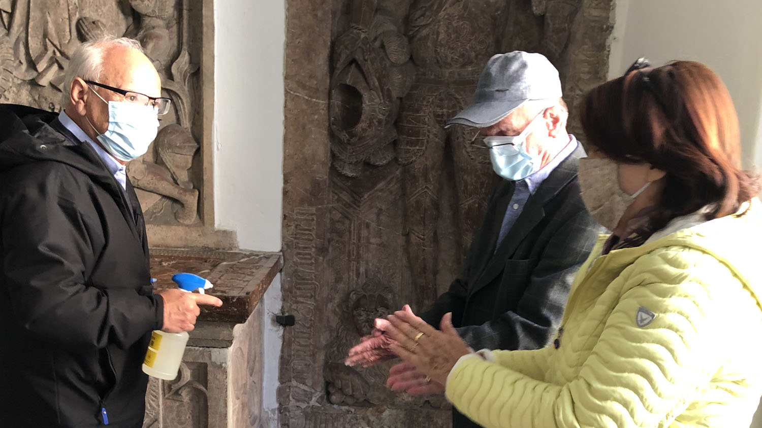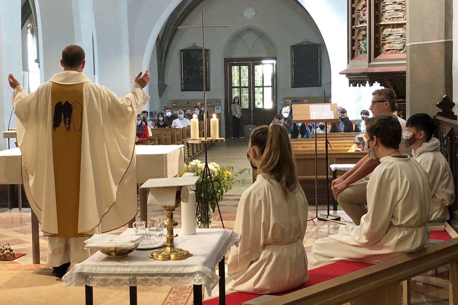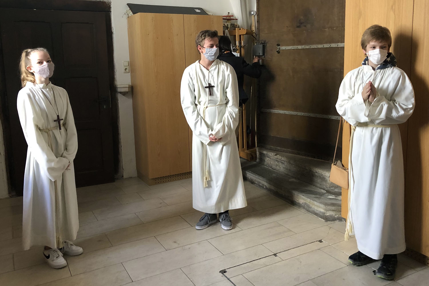 Ein Begrüßungsdienst am Hauptportal sorgte dafür, dass alle notwendigen Maßnahmen in einer willkommenen Art und Weise eingehalten werden konnten. Wenn man auch die einzelnen Gesichter der Gottesdienst-Besucherinnen und -Besucher hinter der Schutzmaske nicht zur Gänze sehen konnte, war es auch so möglich, die anderen mit den Augen anzulächeln und so der Freude über den ersten gemeinsam gefeierten Sonntags-Gottesdienst Ausdruck zu verleihen.