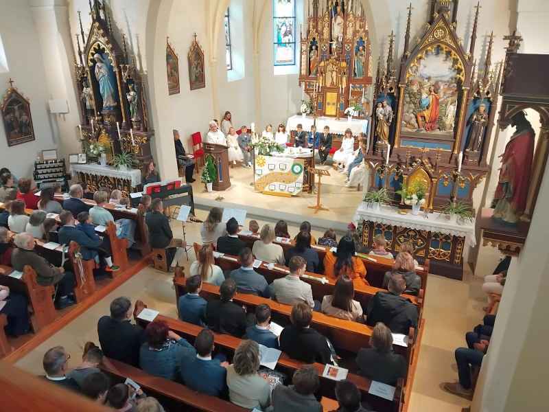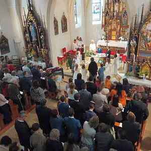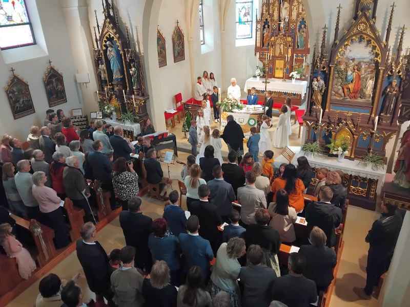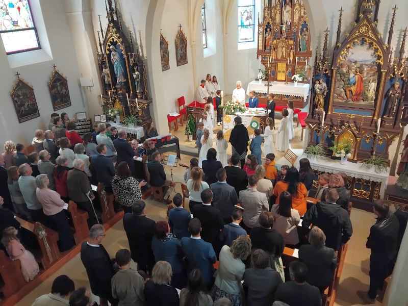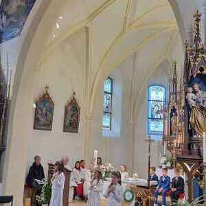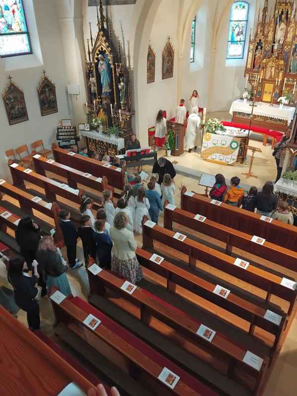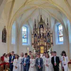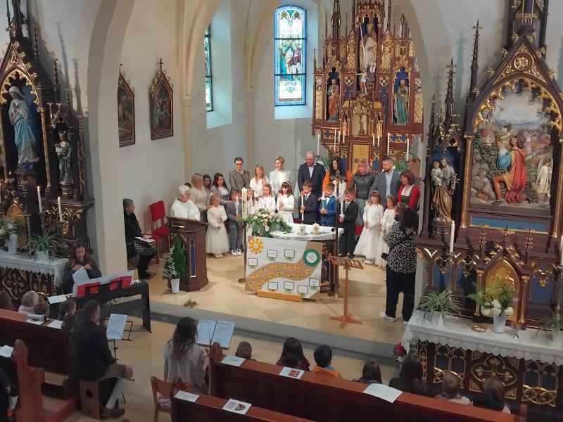 Am 18.Mai durften 13 Kinder aus Wendling das erste Mal die Kommunion durch Pass. Maria Schreckeneder empfangen.