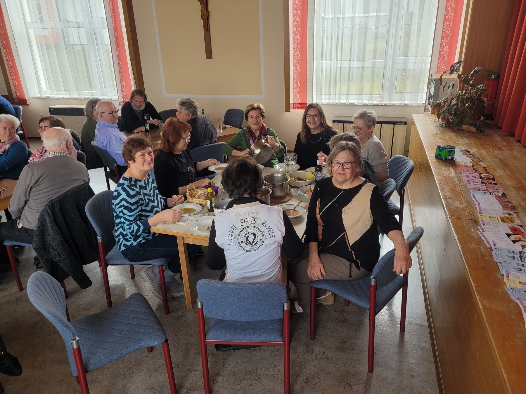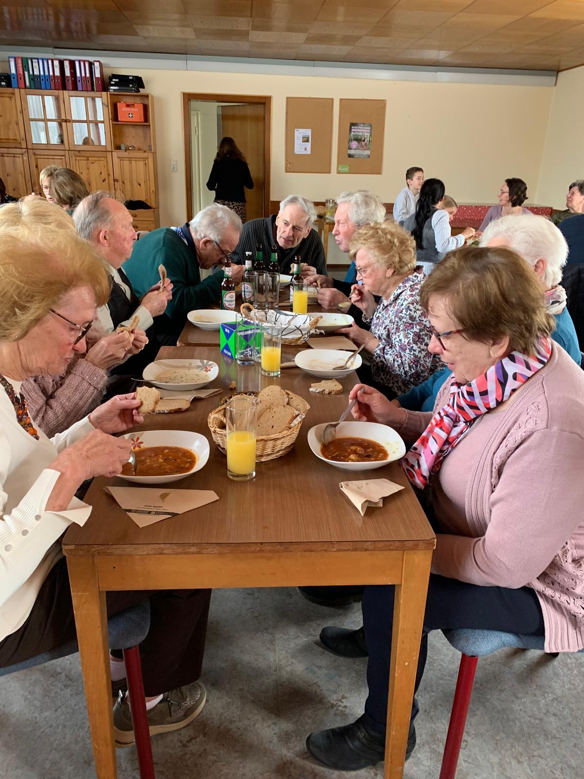 Mit guter Stimmung und angeregten Gesprächen wurde nach der Hl. Messe die Fastensuppe im Pfarrhof verköstigt. Auch die Suppe im Glas fand gerne ihre Abnehmer. So ging ein sehr gut gelungener Sonntag-Vormittag zu Ende, der durch gemeinsames teilen über Grenzen hinaus, Hoffnung und Zuversicht für eine lebenswerte Zukunft möglich macht. Auch für uns!