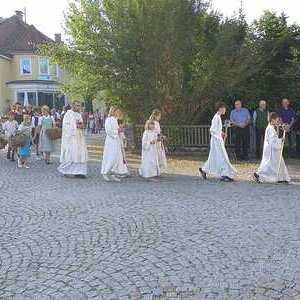 Den Festzug zur Kirche mit anschließender Gottesdienstfeier zelebrierte Pater Piotr Zielinski SDB, mitgestaltet von der Goldhaubengruppe und der Musikkapelle.