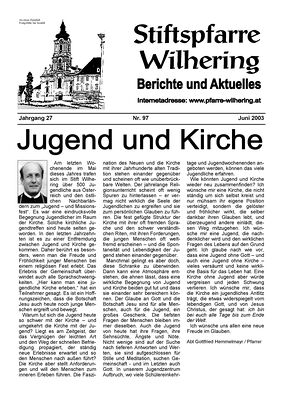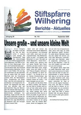 Johann Hofer hat unsere Pfarrzeitung "Stiftspfarre Wilhering", beginnend mit Nr. 113 (Ostern 2007) und endend mit Nr. 173 (Juni 2021) herausgegeben und zum Teil mit eigenen Beiträgen bereichert.