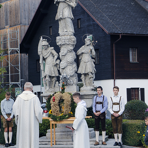 Die Segnung der Erntegaben konnte wie gewohnt am Marktplatz stattfinden. Neben der Bauernschaft feierten heuer zehn Ehepaare ein Ehejubiläum.