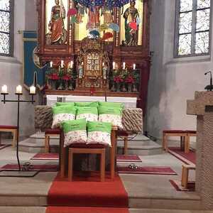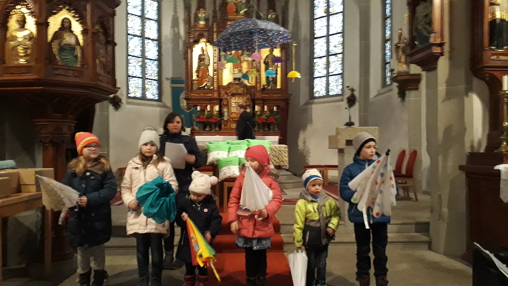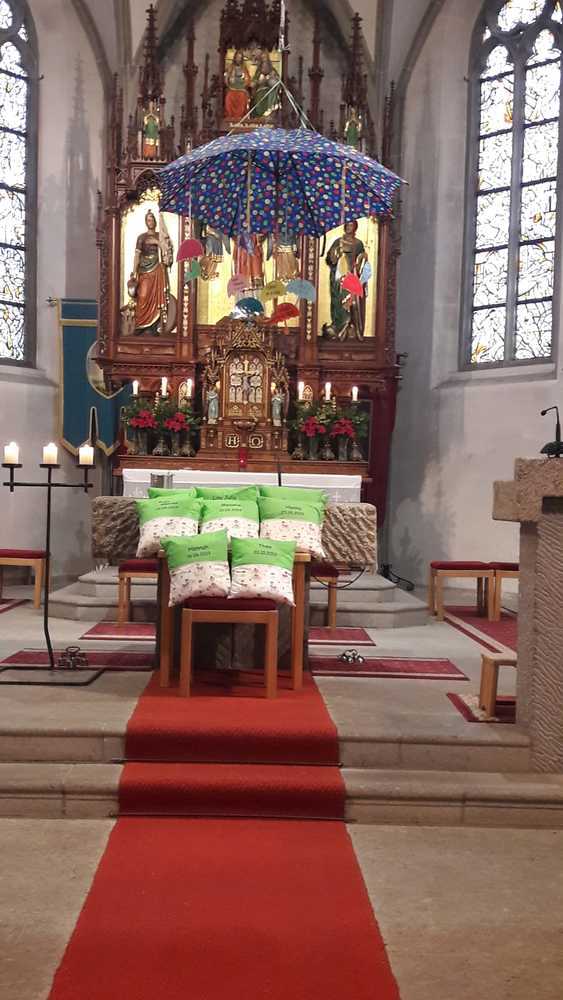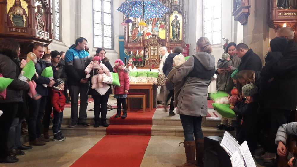 Als Geschenk der Pfarre bekamen die Eltern diesmal wunderschöne Pölster für ihre Täuflinge.