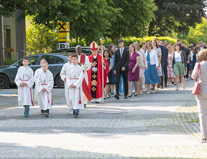 Bei prächtigem Wetter zogen alle Anwesenden mit der Musikkapelle voran in die wunderschön geschmückte Kirche ein, wo Abt Ambros aus Kremsmünster feierlich das Sakrament der hl. Firmung spendete.
